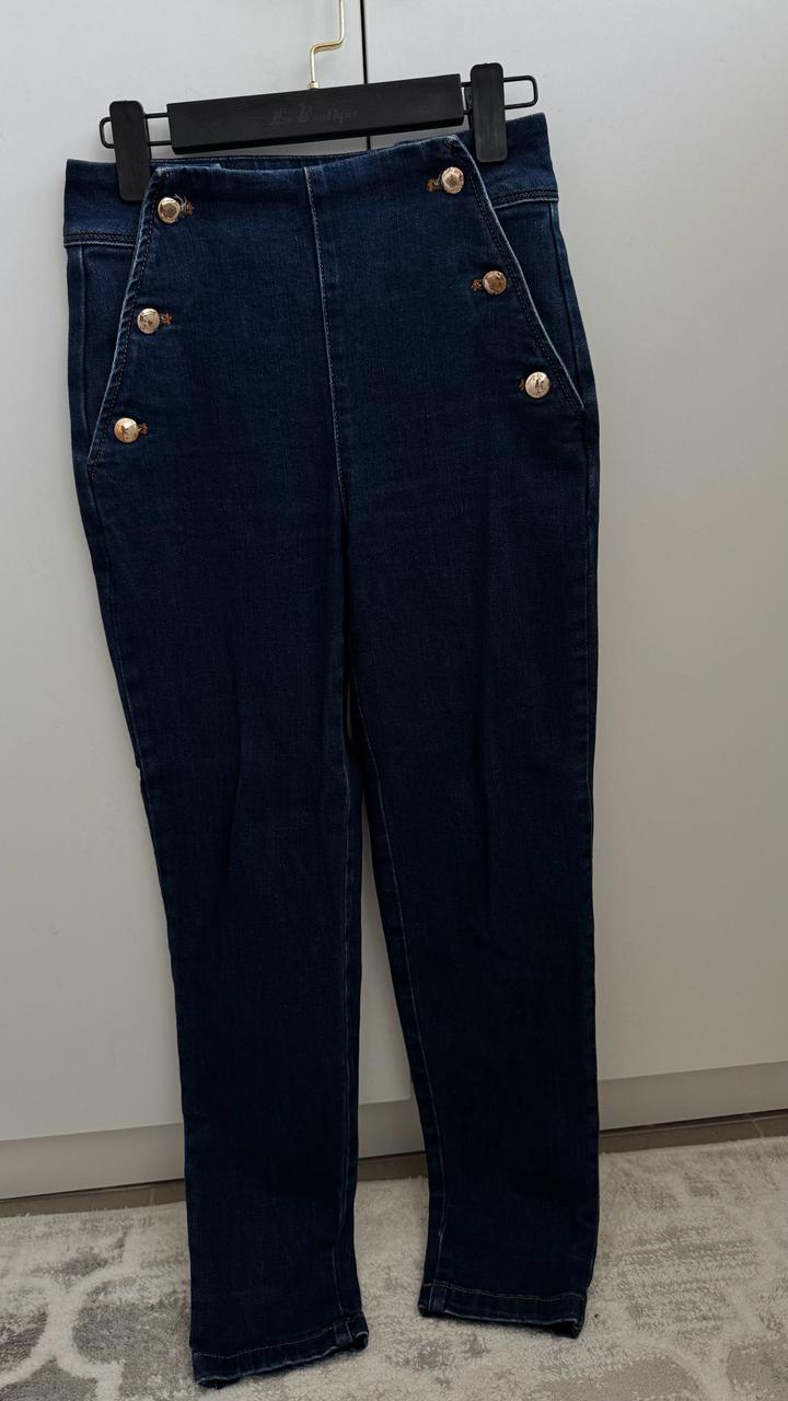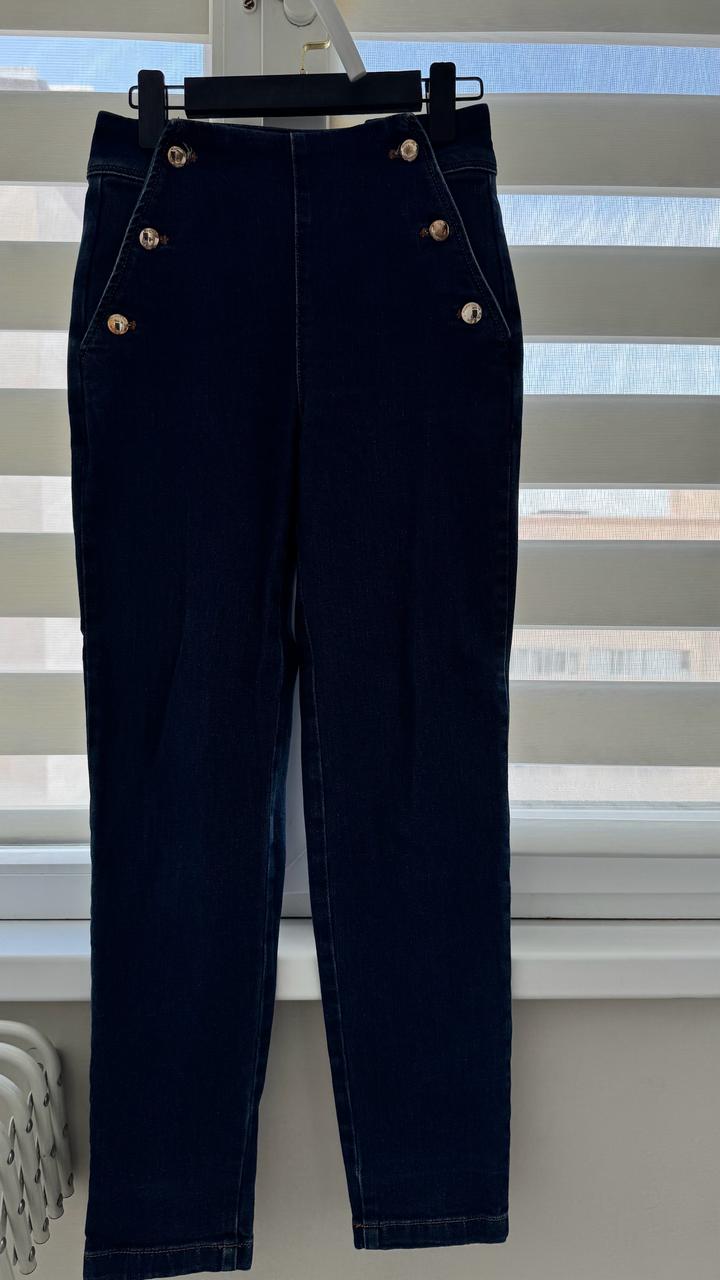 Темно синие джинсы с акцентными пуговицами.Пуговицы рабочие с 2 сторон.Модель скини.Очень красиво смотрятся на фигуре Артикул: 456498