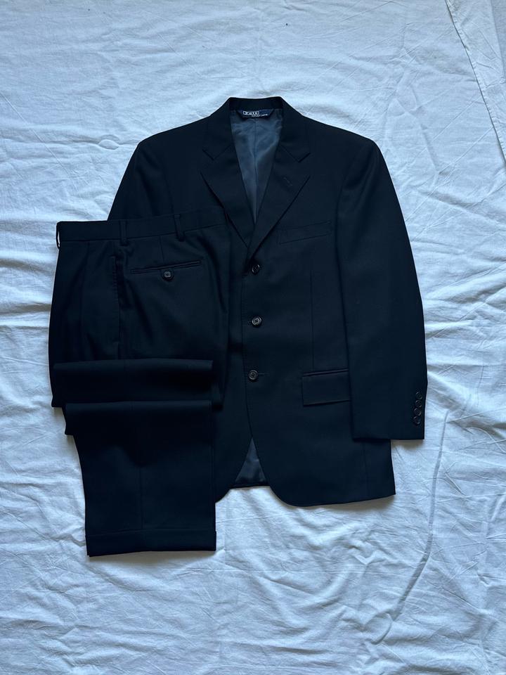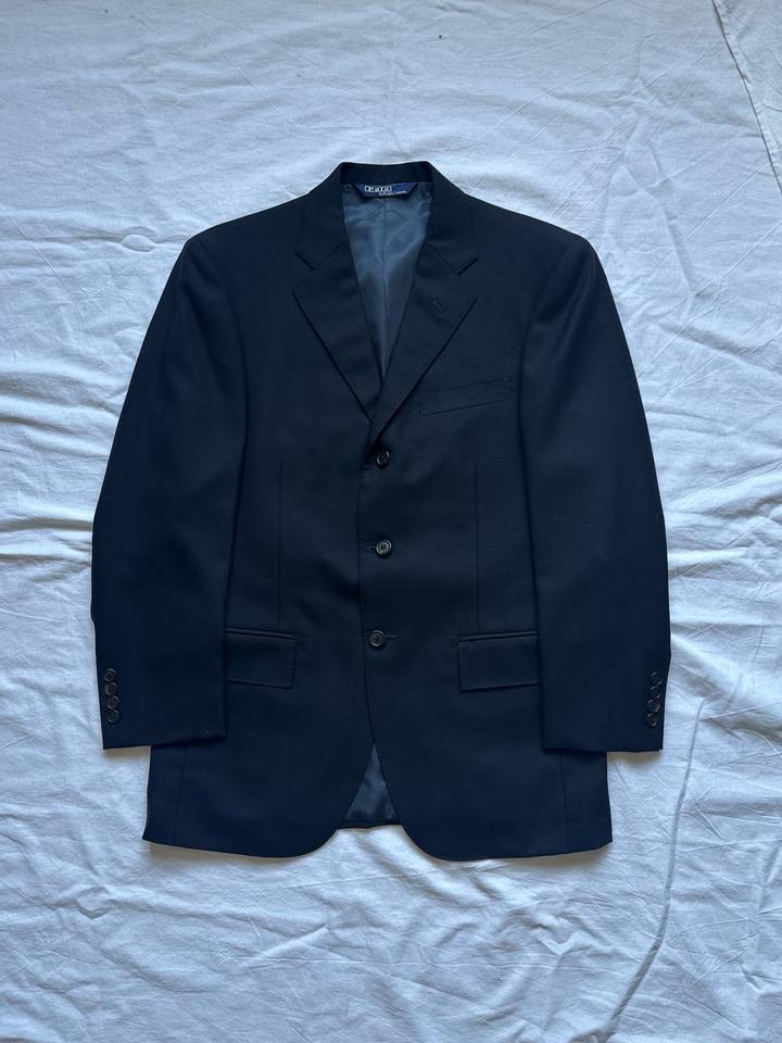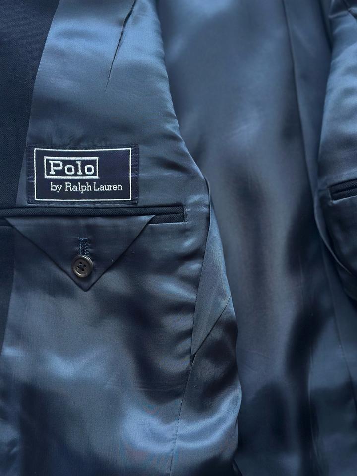 Polo by Ralph Lauren | M (165) Винтажный темно-синий классический костюм от культового Американского бренда. 100% шерсть Плечи 43 Грудь 50 Рукава 58 Длина 72 Талия 78 Бедра 112 Посадка 28 Выход 23 Длина 95 Made in Japan 🇯🇵 Состояние новой вещи, 10/10 Параметры модели: рост 165, размер S-M Артикул: 456786