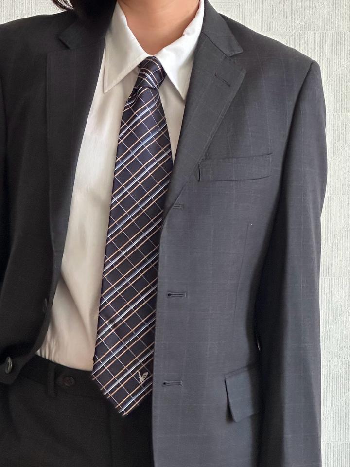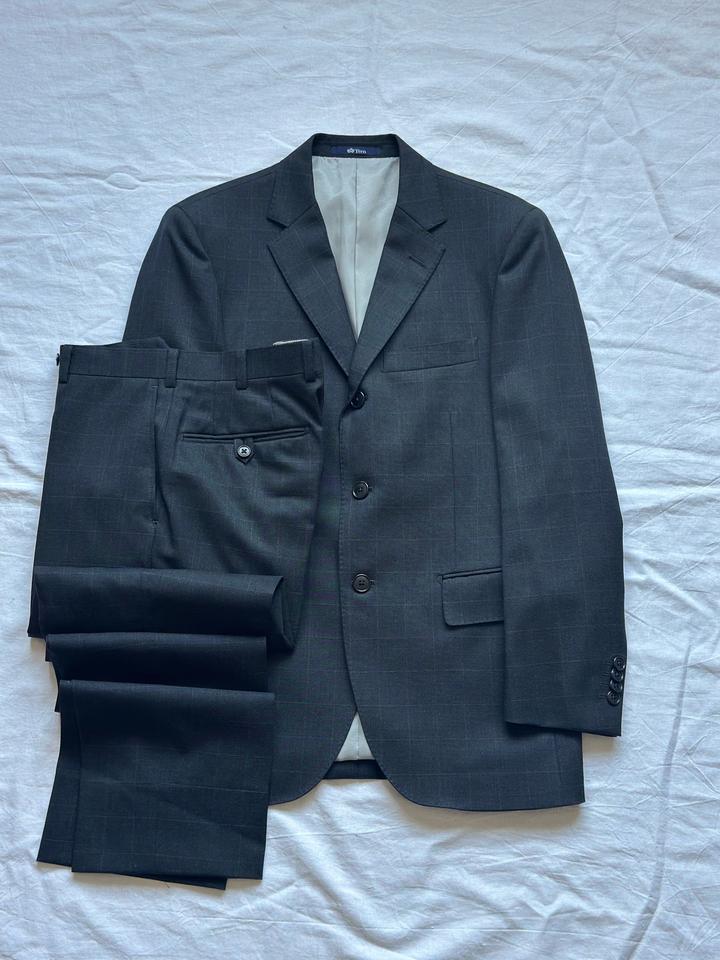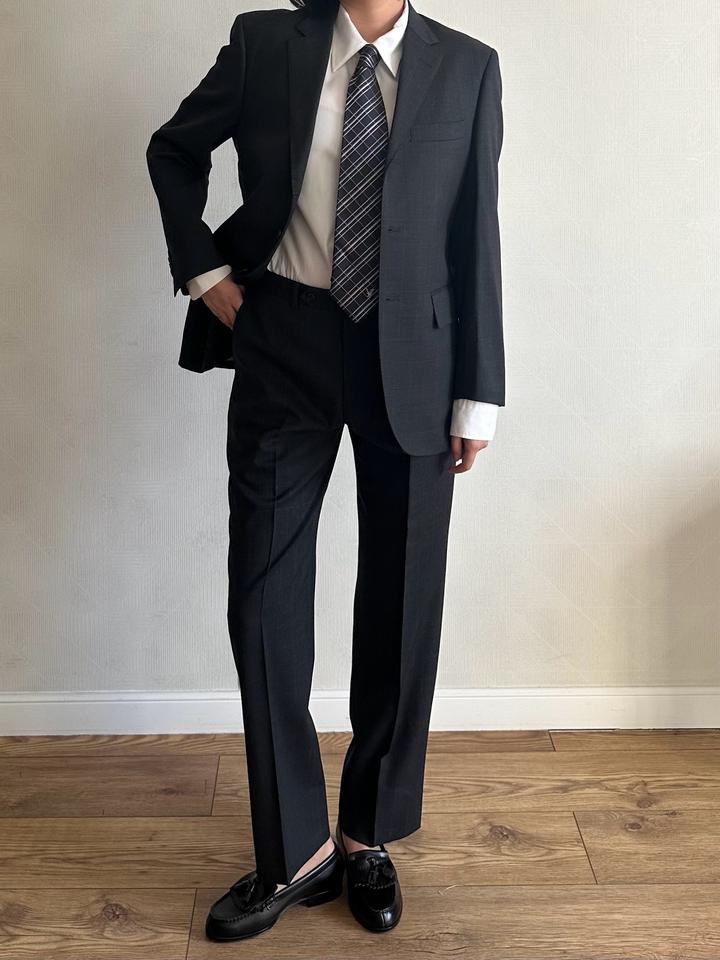 Tern | M (165см) Классический темно-серый костюм в незаметную клетку. 100% шерсть Плечи 41 Грудь 49 Рукава 59 Длина 71 Талия 82 Бедра 100 Посадка 27 Выход 20 Длина 96 Made in Japan 🇯🇵 Состояние идеальное, 10/10 Параметры модели: рост 165, размер S-M Артикул: 456850