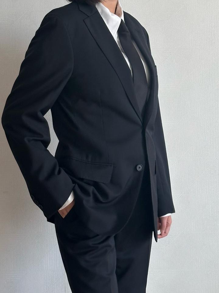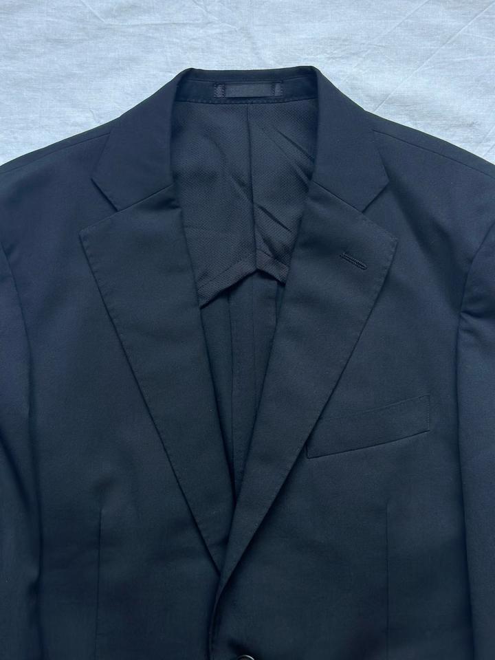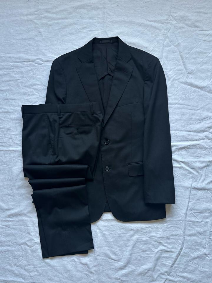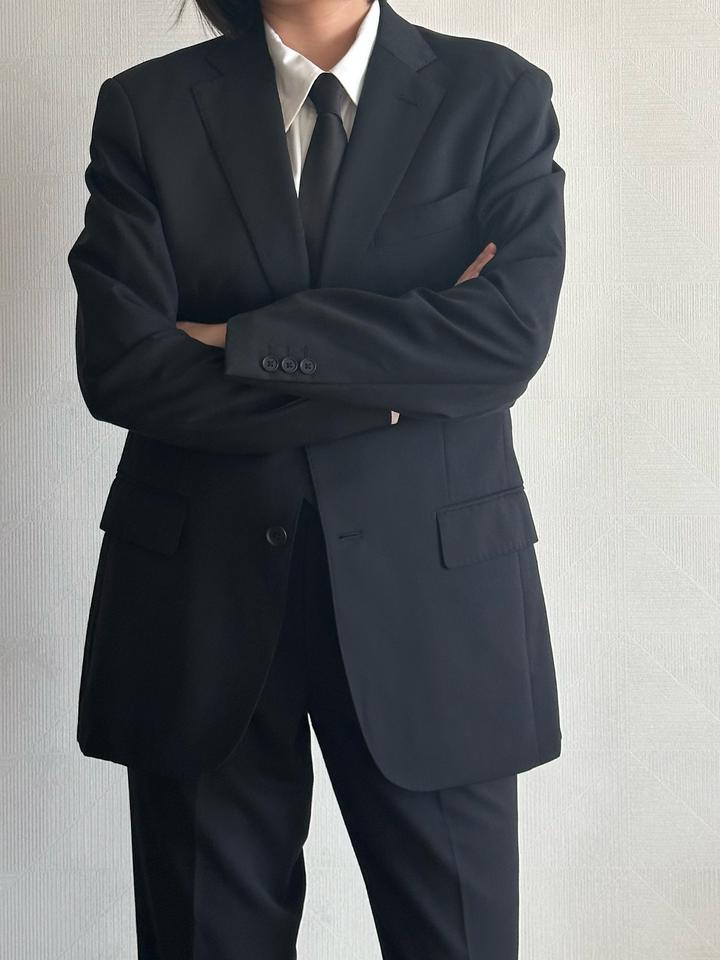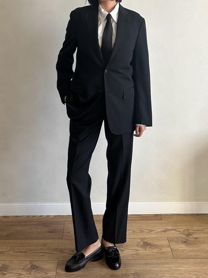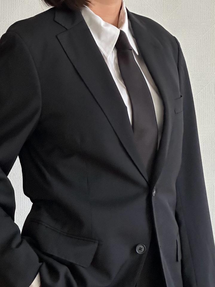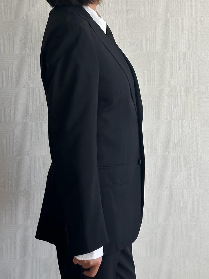 Les Mues | M (175см) Классический однобортный костюм в черном цвете. 59% пэ 40% шерсть Плечи 42 Грудь 50 Рукава 61 Длина 71 Талия 80 Бедра 98 Посадка 25 Выход 19 Длина 96 Made in China 🇨🇳 Состояние хорошее, 10/10 Параметры модели: рост 165, размер S-M Артикул: 456861