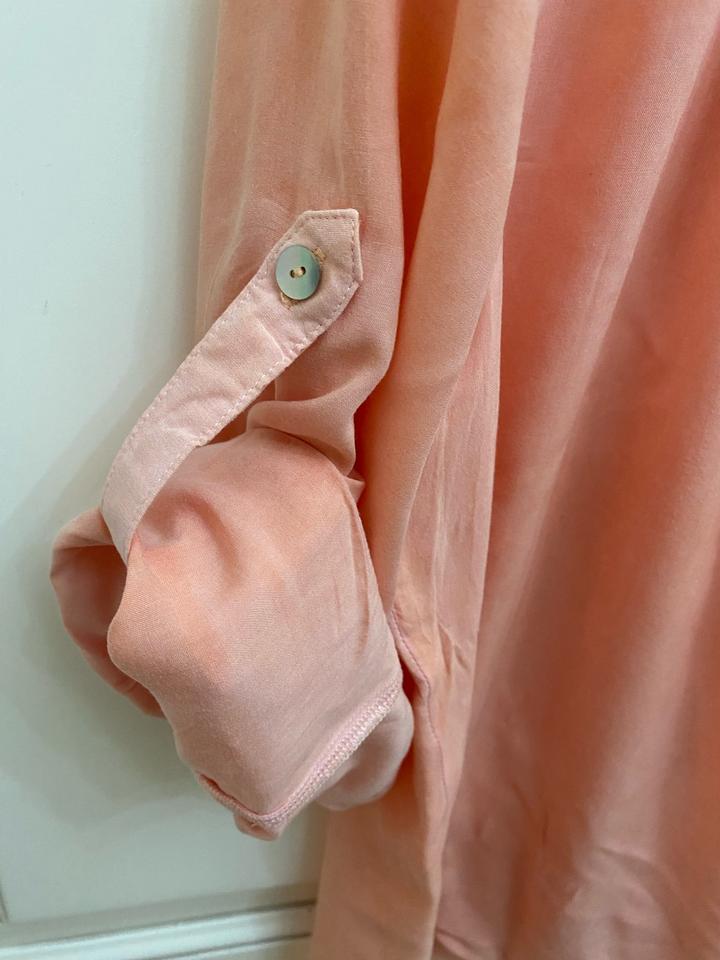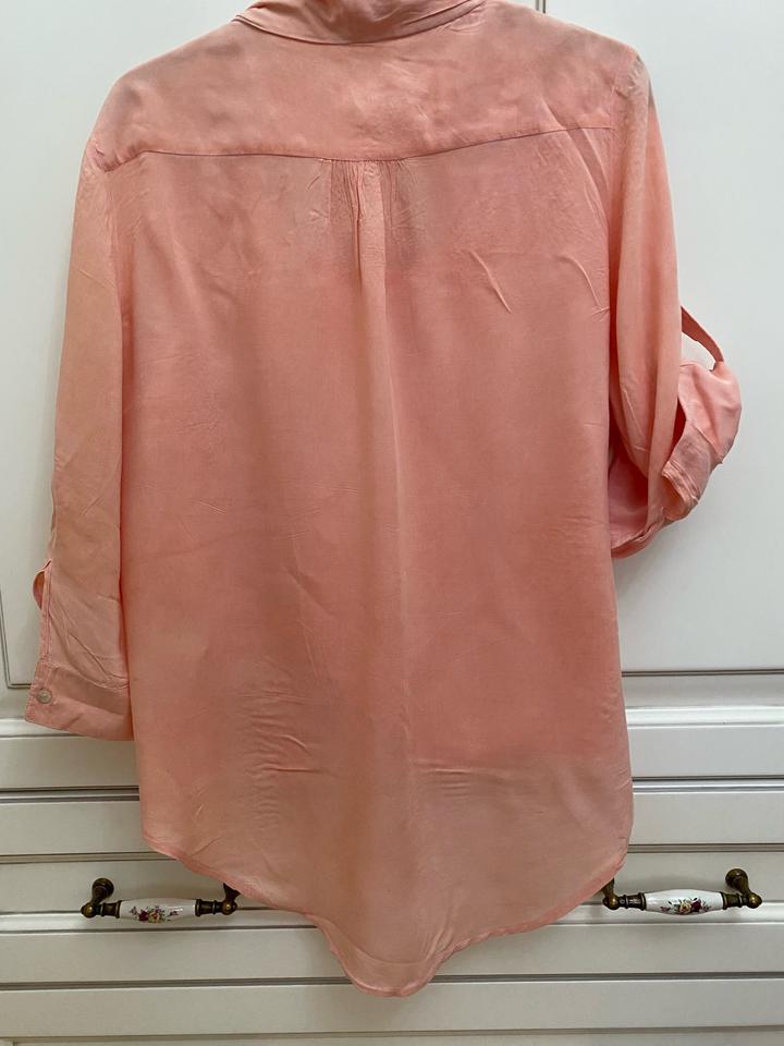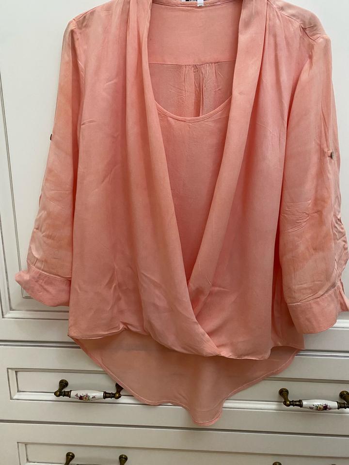 Блузка оранжевого цвета, ткань как штапель и рисунок слегка как варённый. Спереди длина около 63, сзади +7### ### ## ##й животик)). Идёт и на 46 размер. Артикул: 457426