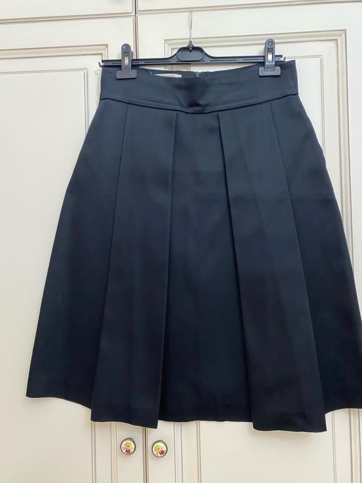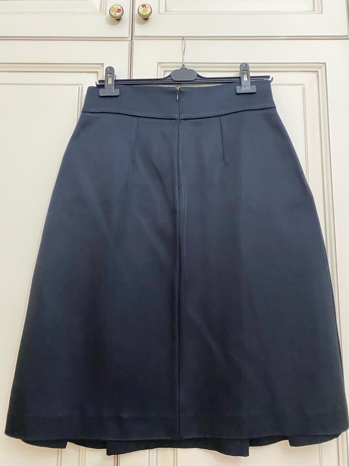 Черная юбка, сзади на замке. Ткань как плотный атлас, хорошо держит форму. Спереди складки. Покупала в фирменном бутике в Алматы. ПОТ 40 см, длина 70 см Артикул: 457461