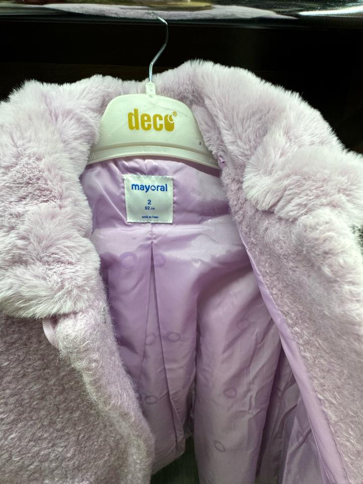 Пальто букле Mayoral в фиолетовом цвете. Размер 2-3 года. Была в носке пару раз. Артикул: 457566