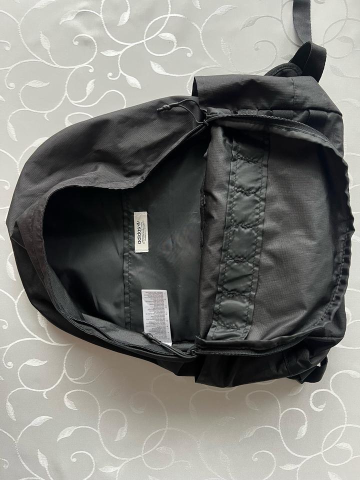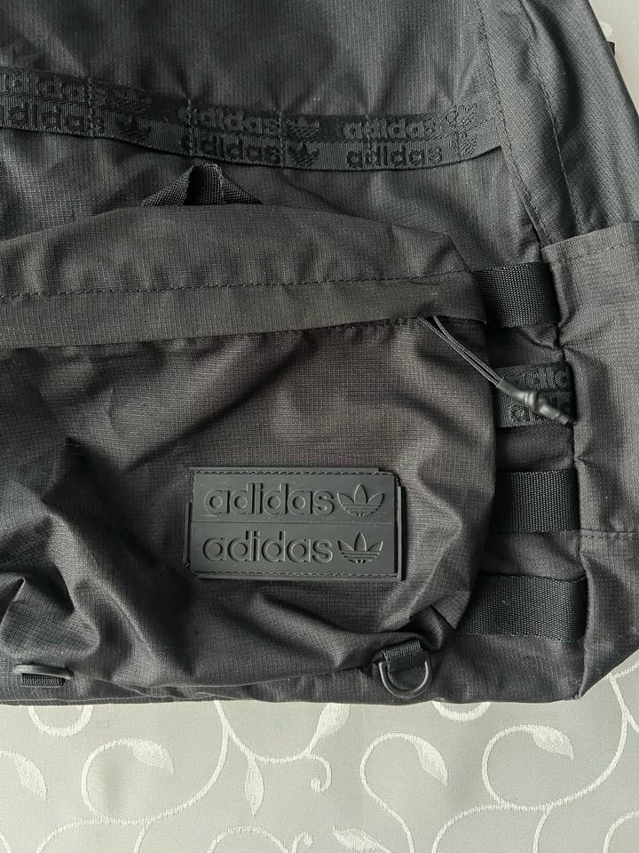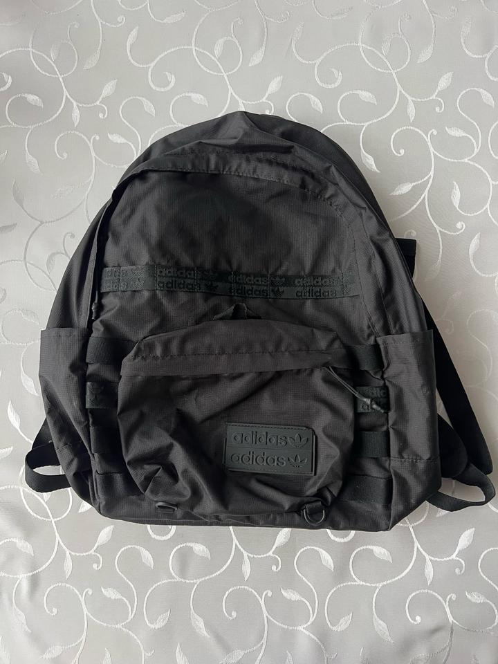 Черный рюкзак adidas среднего рамзера. Вмещает ноутбук. Несколько отделений и наружный карман Артикул: 457689