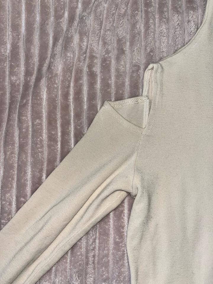 Трикотажная кофта бежевого цвета с открытыми плечами, приталенная, хорошо подчеркивает силует и стройнит. Покупала в Сеуле в маленьком местном магазине. Носила раз 4-5 не более. Подойдет на размер xs-s. Очень хорошее состояние, дефектов абсолютно нету Артикул: 457791