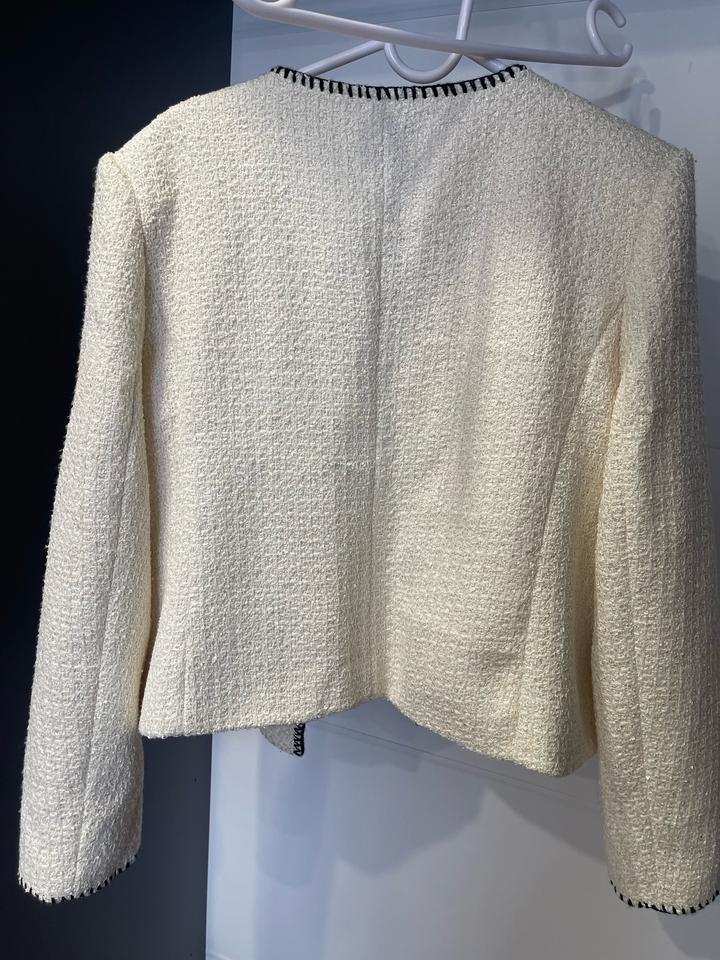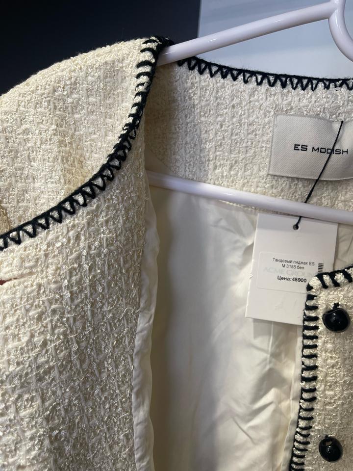 Новый пиджак из твида. Цвет экрю. Размер М, подойдет и на S. Очень стильный. Покупала себе два таких, черный оставила, светлую продаю. Цена 45,900, отдам за 20,000тг. Артикул: 457976