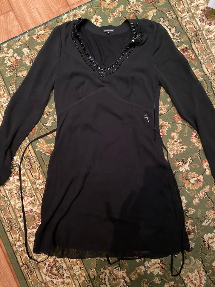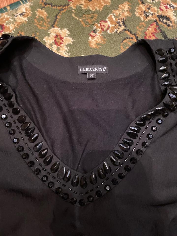 Чёрное платье марки L.A. Blue Rose размера M с отделкой из тёмных камней Артикул: 459212