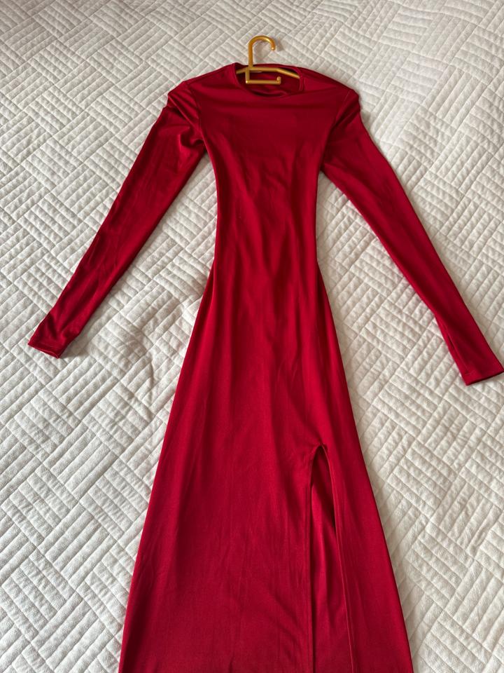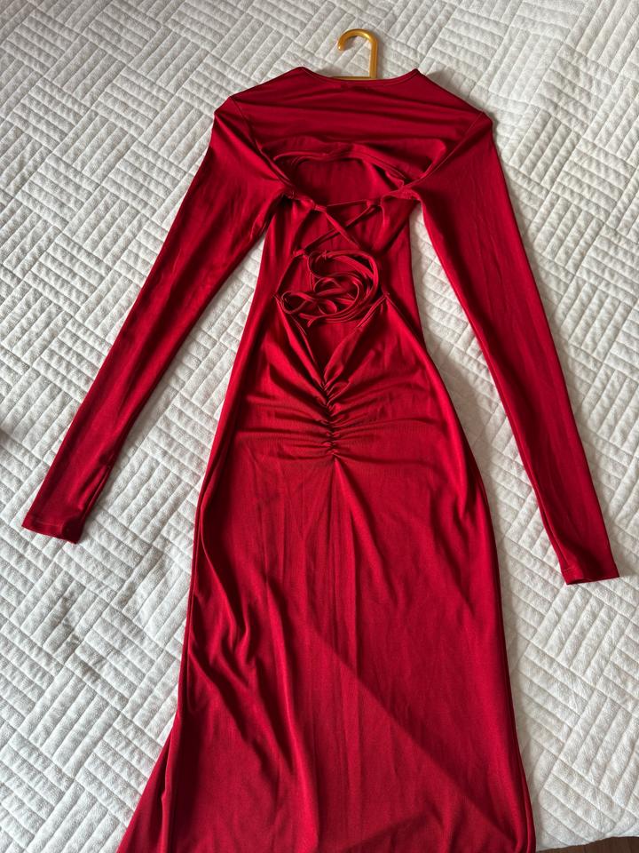 Красное облегающее платье с длинным рукавом и открытой спиной на шнуровке. Надевала всего 1 раз. Почти новое. Размер S Артикул: 459431