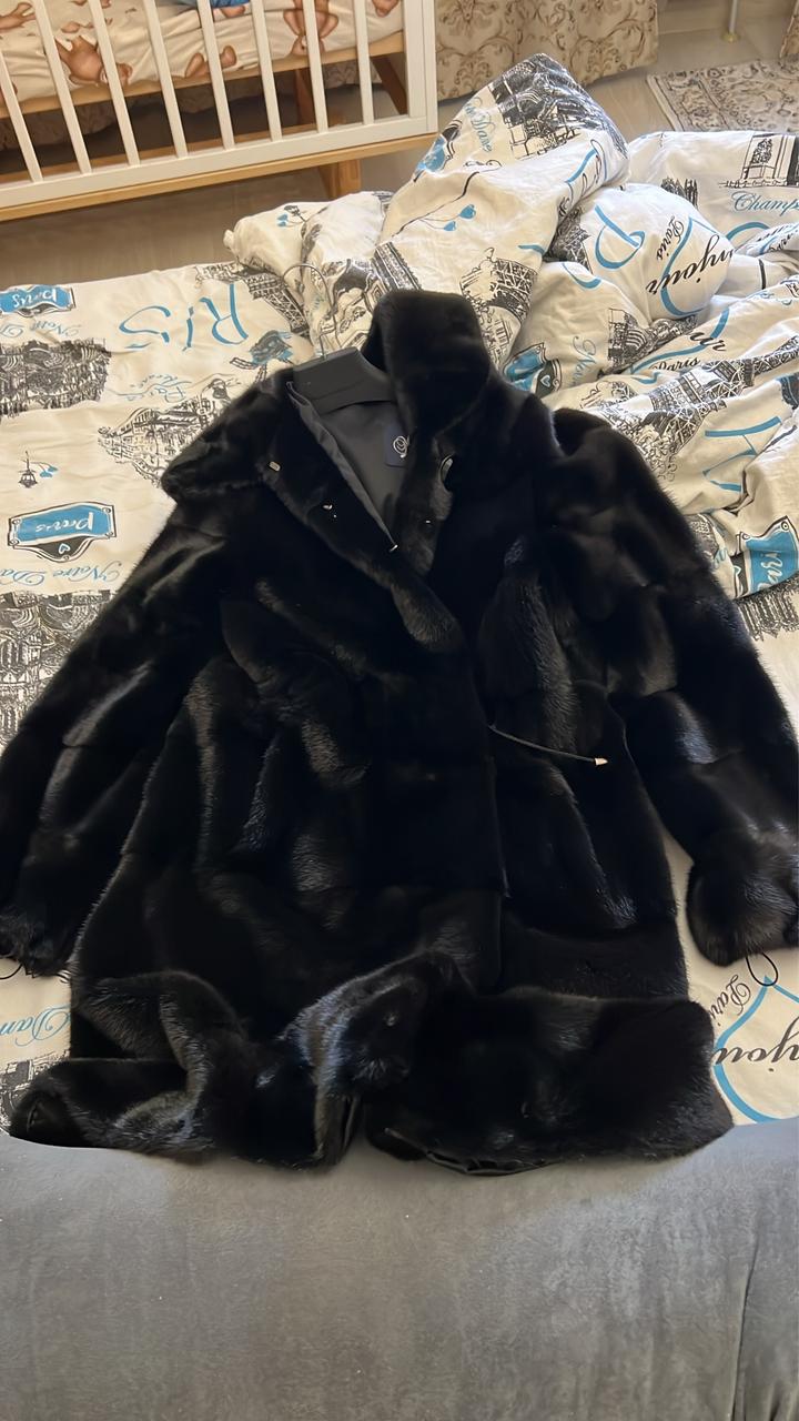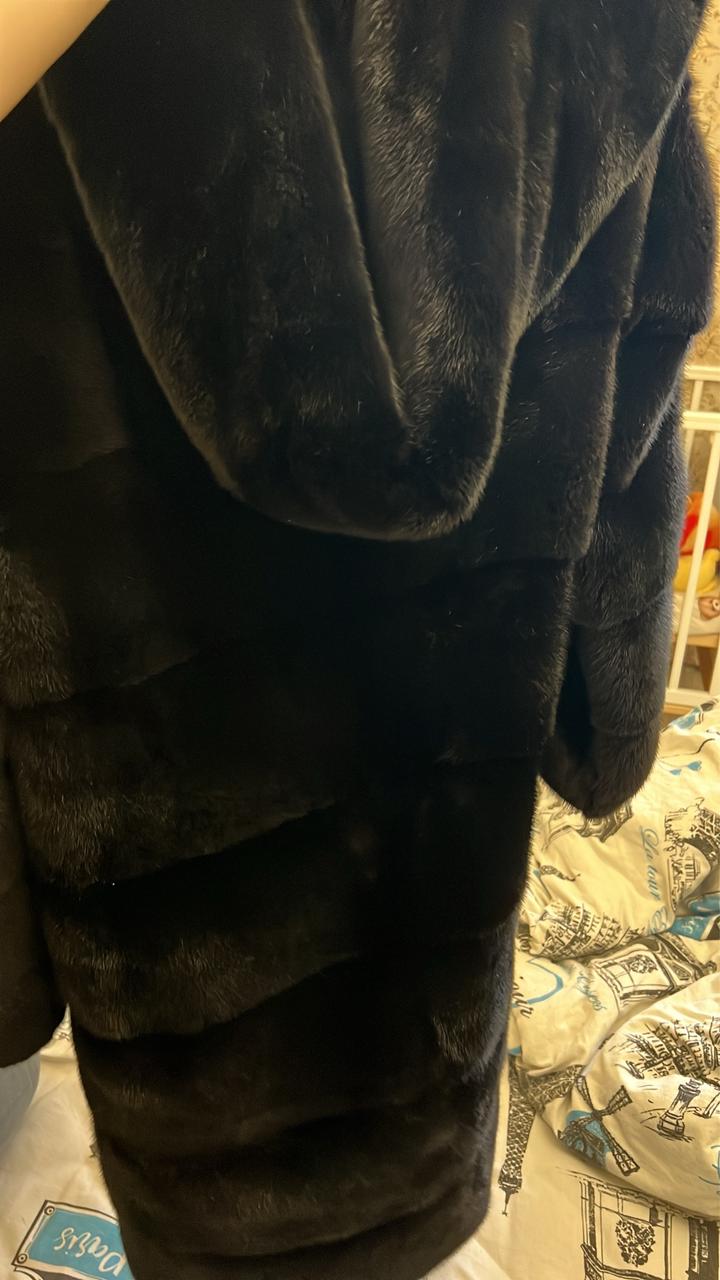 Натуральная норковая шуба , длина до колен, с капюшоном, на пуговицах, с карманами . В отличном состоянии Мирель 44 размер Артикул: 459444