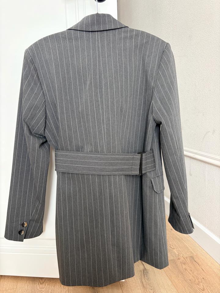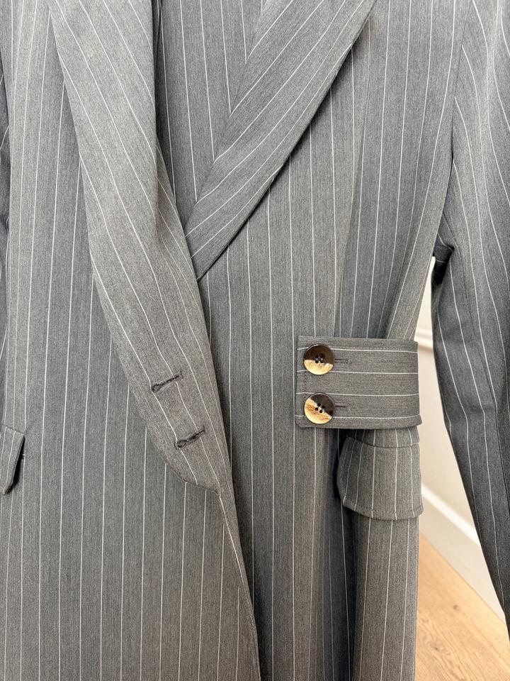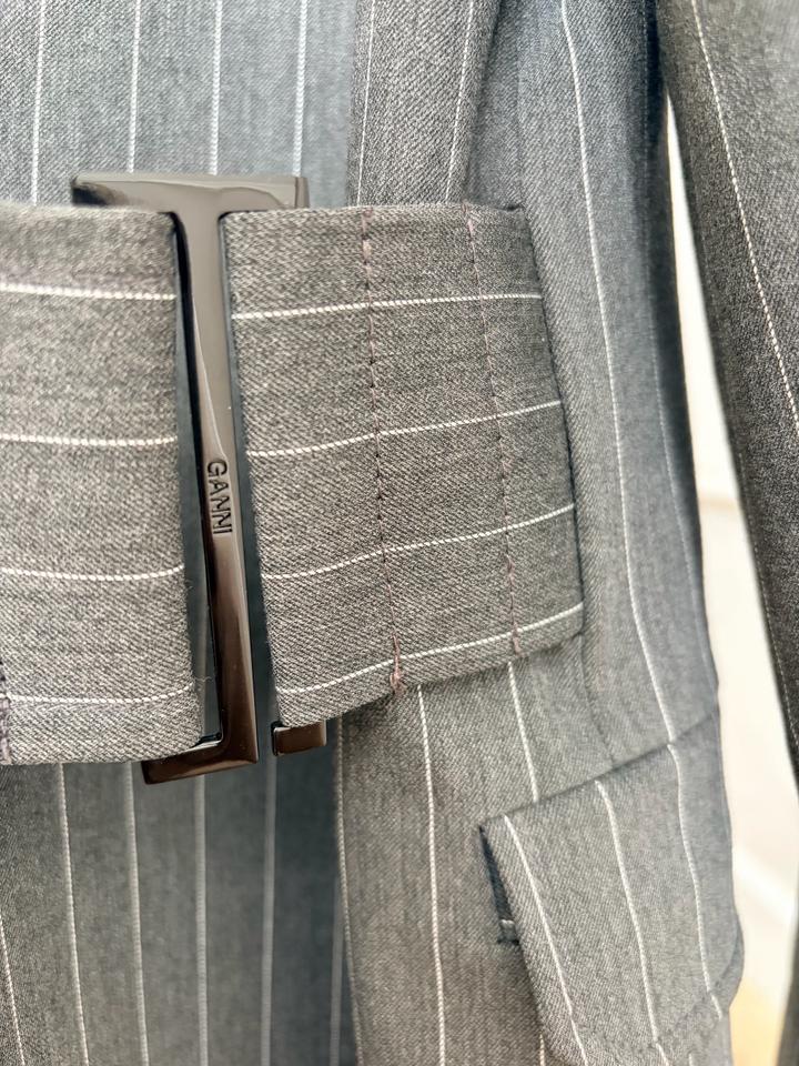 Костюм GANNI (оригинал) Пиджак + брюки, серый в тонкую полоску Детали: • асимметричный пиджак с акцентной застёжкой и поясом • современный крой, подчёркивает фигуру • брюки с эластичным поясом — комфорт и посадка без усилий • актуальная тонкая полоска • цвет: серый • бренд: GANNI Подойдёт для офиса, встреч, мероприятий и повседневных образов. Отлично смотрится как комплектом, так и по отдельности Артикул: 459499
