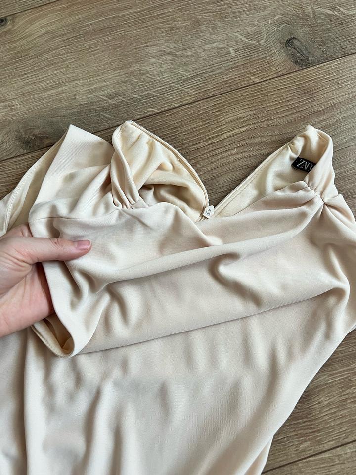 Облегающее платье с драпировкой от Zara, размер S, молочно-бежевый цвет, новое, нигде не носила. Длина платье ~135см. Покупала в Катаре. Артикул: 459686
