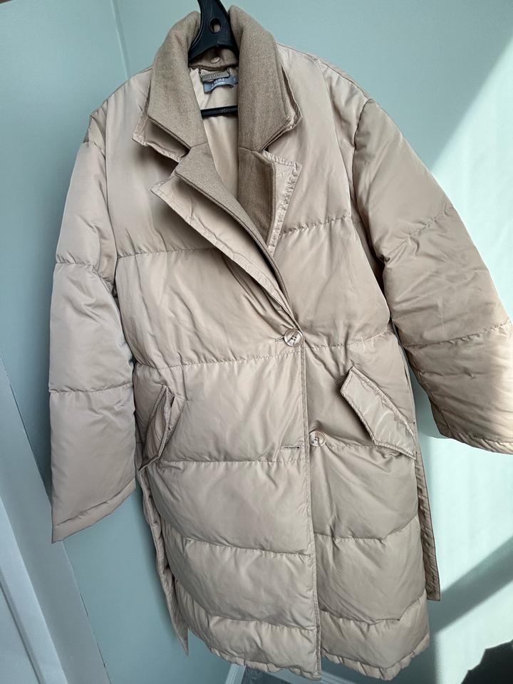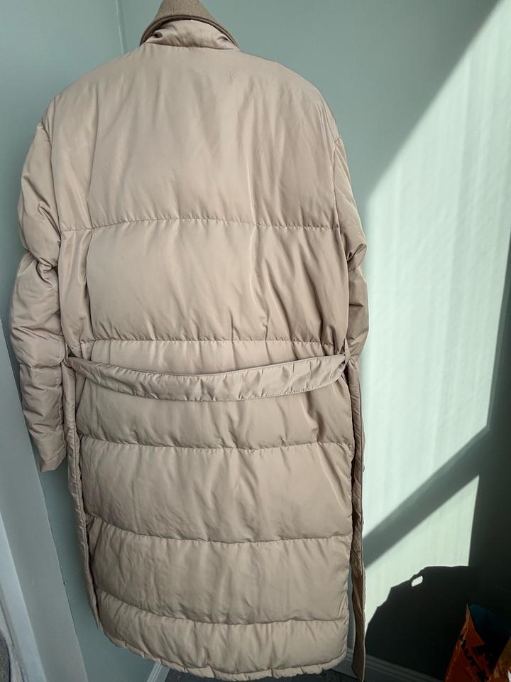 Женский пуховик-пальто, бренд Lichi. Размер S. На теплую зиму, раннюю весну и позднюю осень. Ткань водоотталкивающая. Драповая окантовка отстегивается. В хорошем состоянии. Артикул: 459827