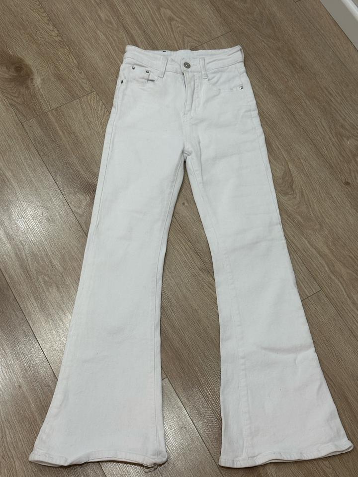Белые джинсы клёш с высокой посадкой — подчёркивают талию и визуально удлиняют ноги. Стильная база для лёгких и женственных образов.🤍Размер 25 по меркам джинс Артикул: 459901