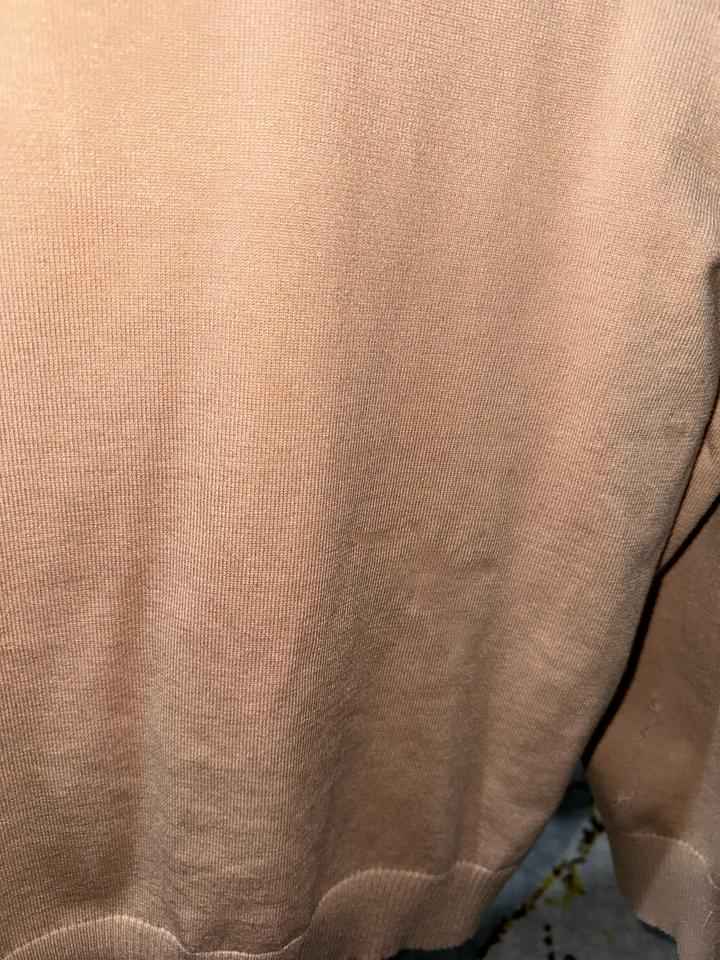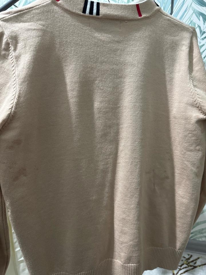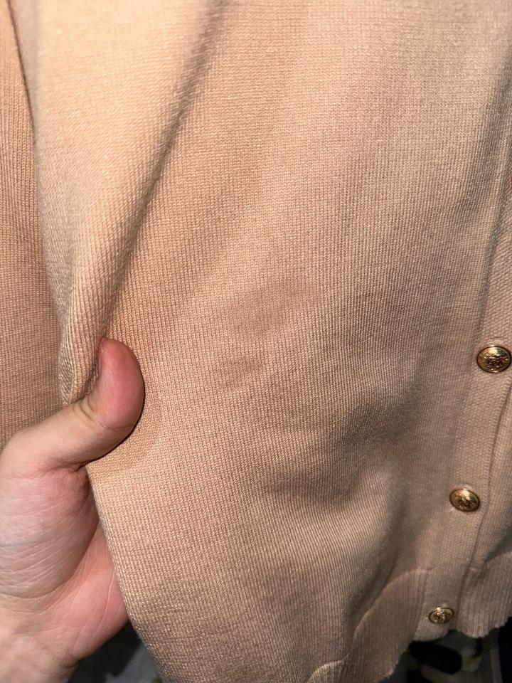 Бежевый кардиган 🤍 Состояние — новое. Во время хранения в чемодане пролился азелит, поэтому есть небольшое пятно🥹 (1 раз постирана). Из-за этого отсутствует этикетка. После этого ни разу не надевалась. Размер: M/L Цвет: нежный беж Материал: мягкий, приятный к телу трикотаж Застёгивается на пуговицы, стильная фурнитура. Есть фирменный логотип на груди. Очень аккуратный, смотрится дорого и стильно. Подойдёт как к классическому, так и к повседневному образу. Артикул: 460694