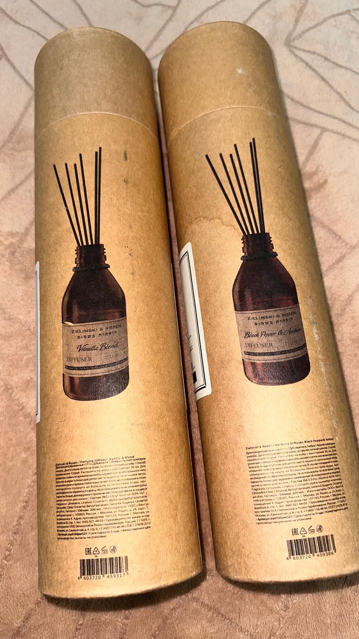 Black Pepper & Amber, Neroli • Это диффузор с пряно‑амброво‑цитрусовым ароматом: в нём есть ноты чёрного перца, амбры и нероли (что даёт свежесть и лёгкую цветочную составляющую). Zielinski & Rozen Vanilla Blend Diffuser (212.5 мл) — ароматический диффузор с насыщенным ванильным ароматом. Он наполняет комнату приятным уютным запахом ванили с глубокими сладкими нотами,Люкс копия,неиспользованный Артикул: 460928