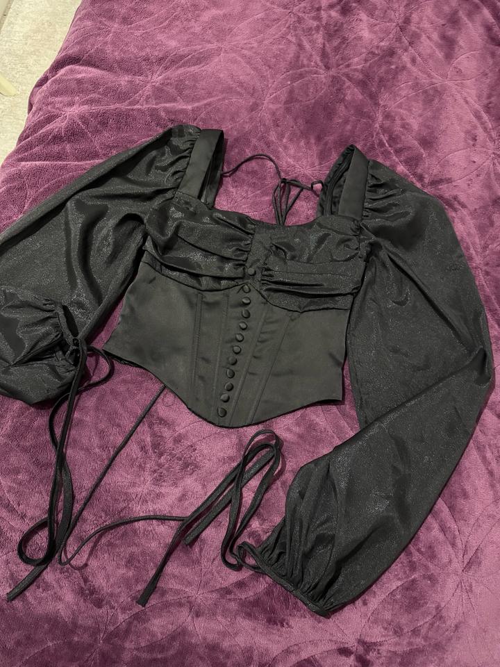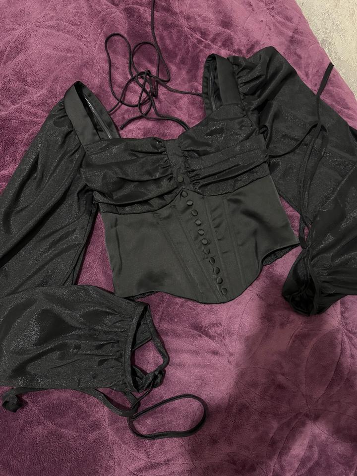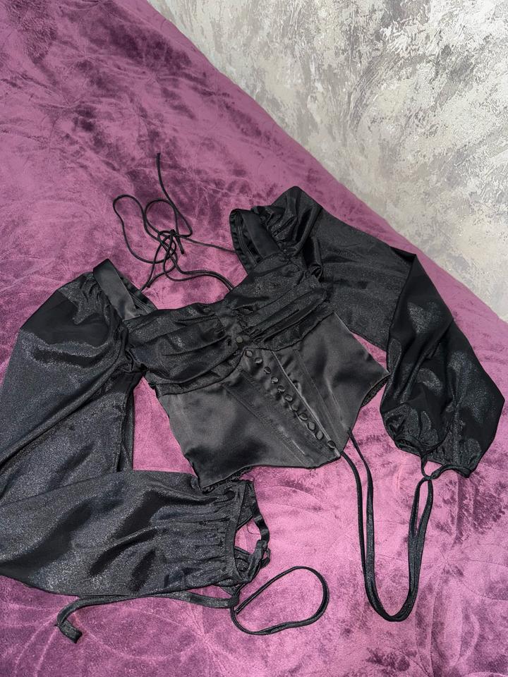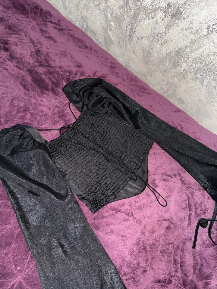 Стильный чёрный вечерний корсет с блестящим декором и прозрачными рукавами. Сзади удобная шнуровка, позволяющая идеально подчеркнуть талию. Корсет выглядит очень эффектно и сразу создаёт праздничный образ. Отличный вариант для вечера, выхода в свет и фотосессий😍 Артикул: 461069