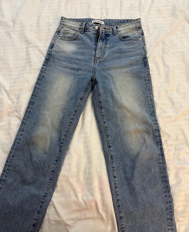 Отличная джинса🤩, Купила без примерки,оказались большими (У меня xs,на s/m подойдёт) Бренд корейский,качество отличное Джинсы прямого кроя с высокой посадкой. Классический деним с лёгким эффектом выварки, Артикул: 461108
