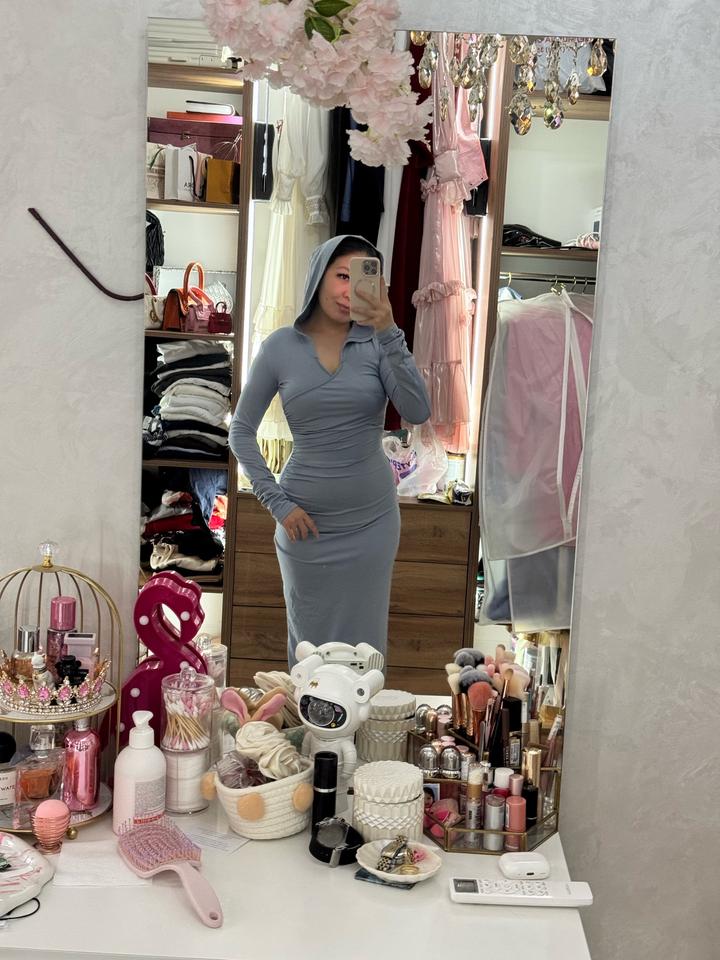 Голубое платье в обтяжку с капюшоном, удобная, насчет эластичного материала подойдет на любой размер Артикул: 461126
