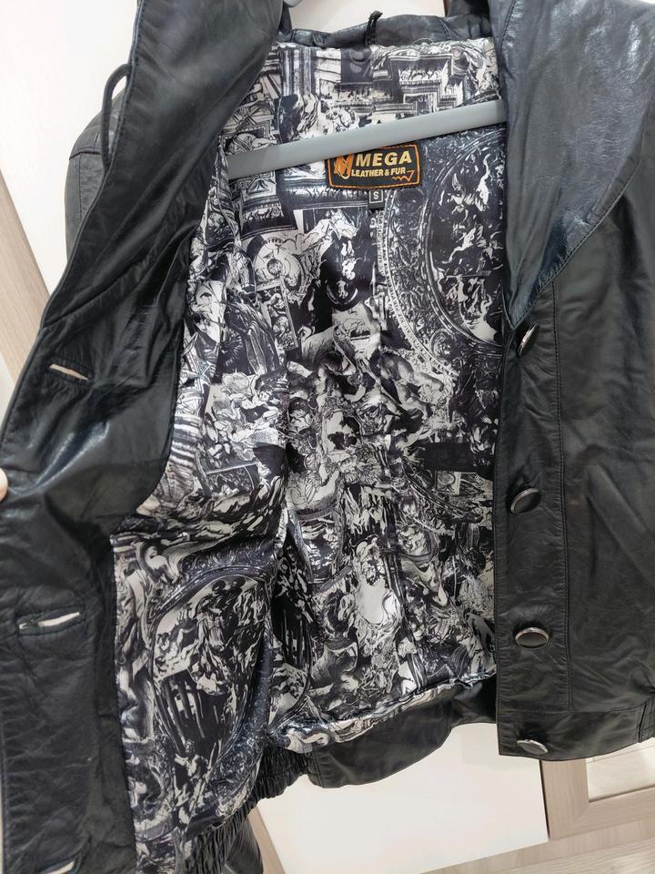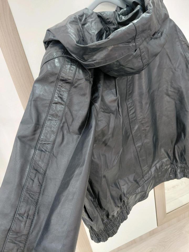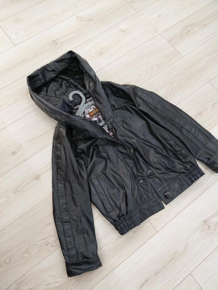 Кожаная женская куртка с капюшоном, размер S, подойдет на M и L. Куртка с капюшоном, свободного кроя, снизу по бокам на резинке. Покупала в Турции. Артикул: 461189