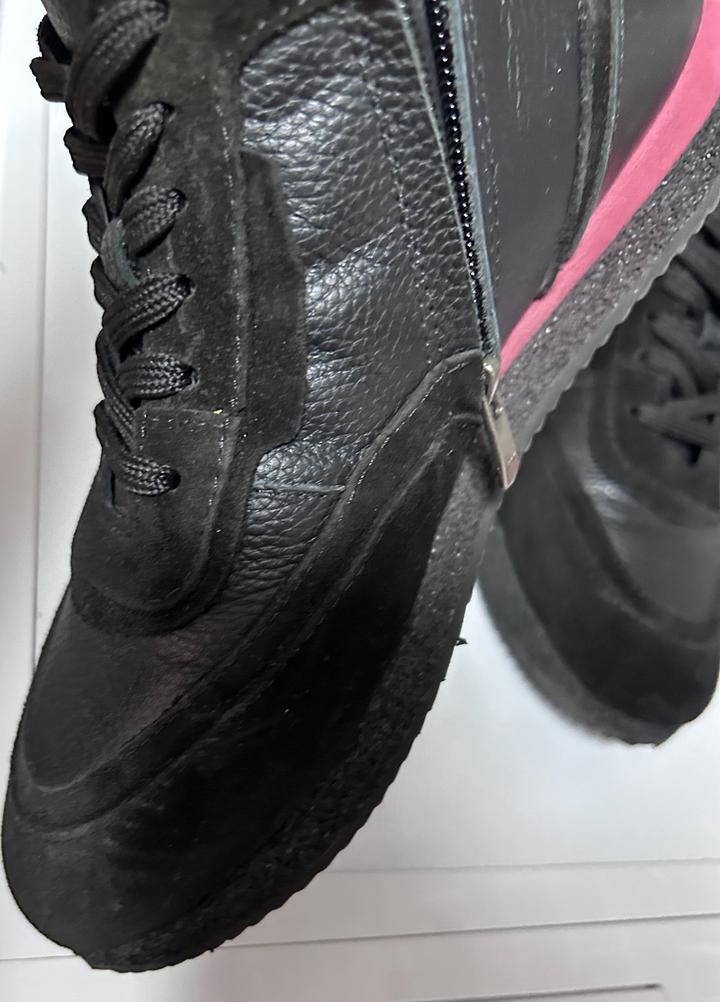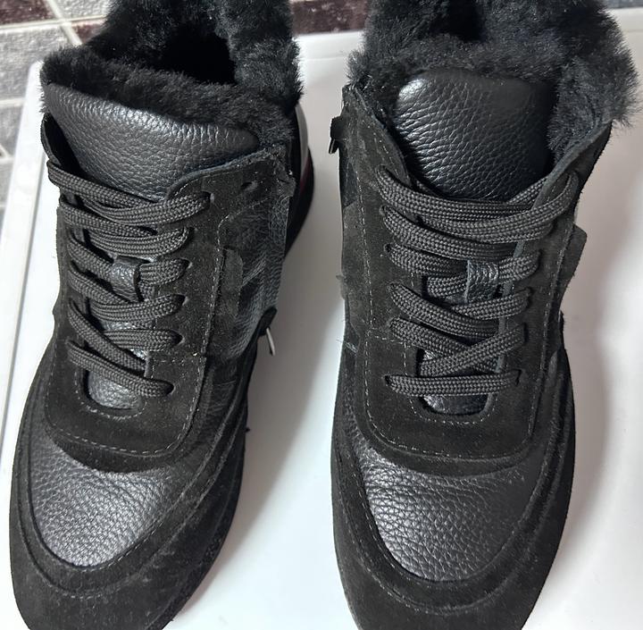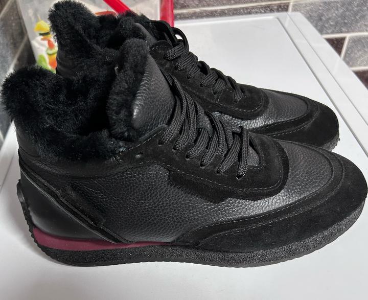Кожанные ботинки с натуральным мехом, очень теплые. Одела 2 раза, жмут. Заказывала через байера с Турции. А так ботиночки просто супер. Размер 39, размер в размер. Кожа и замша комбинированный. Артикул: 461713