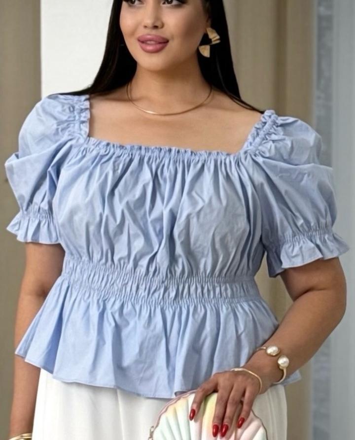 Голубая блузка из Perfetto, новая, ни разу не надевалась. Очень нежный цвет, освежает образ 💙 Размер 54-56 Артикул: 462450