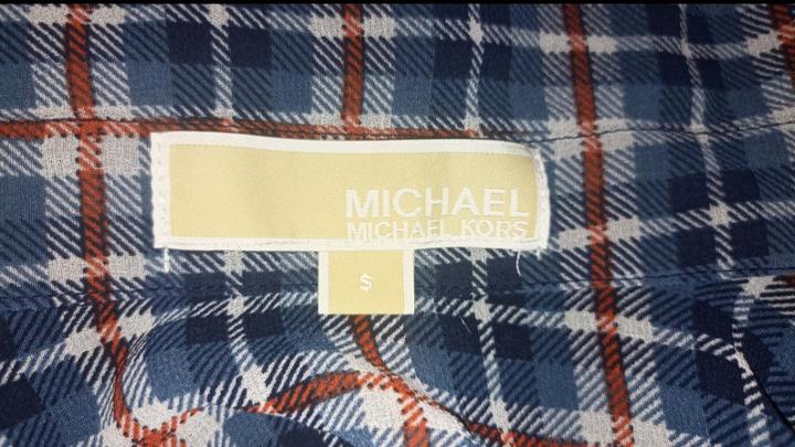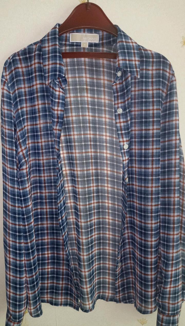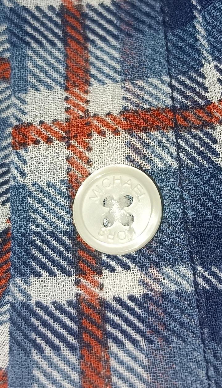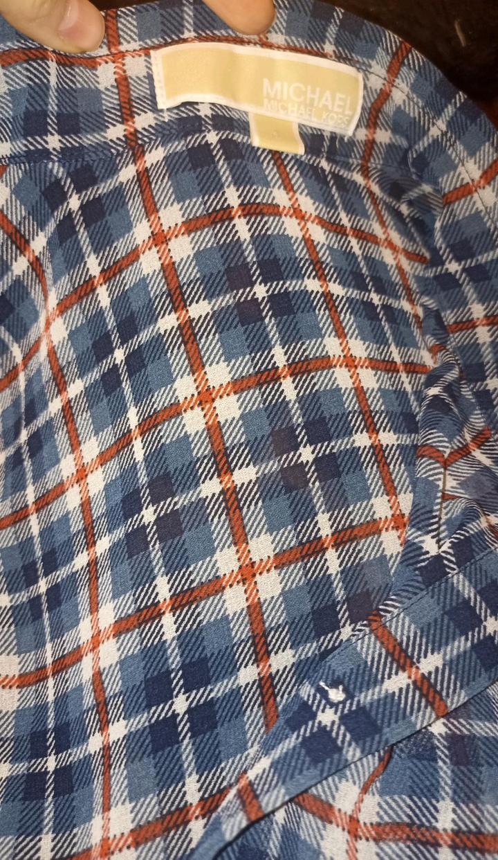 Эта клетчатая рубашка от бренда Michael Kors выполнена в синих,белых и оранжевых тонах. Артикул: 462628