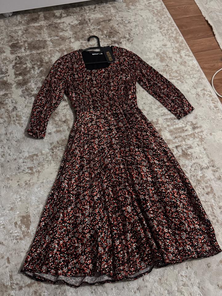 Турецкое нежное платье .Очень стильное и аккуратное платье, которое делает образ женственным и элегантным .Женственное платье с красивым мелким узором в красно-белых тонах на чёрном фоне. Приталенный фасон подчёркивает талию, юбка расклешённая — смотрится очень изящно и красиво в движении. Артикул: 462683