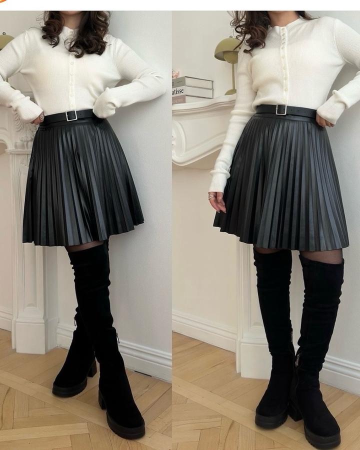 Кожаная короткая юбка плиссеM