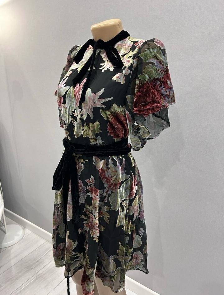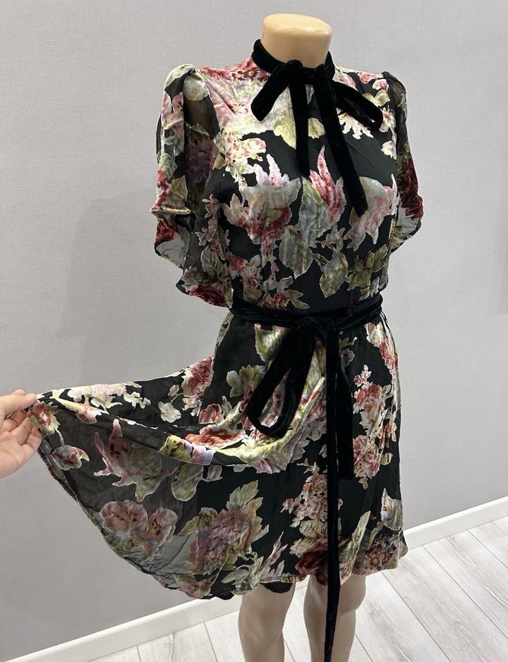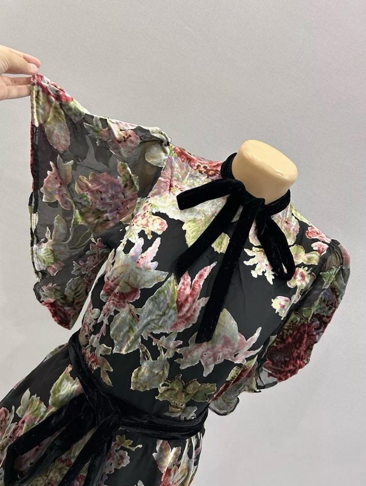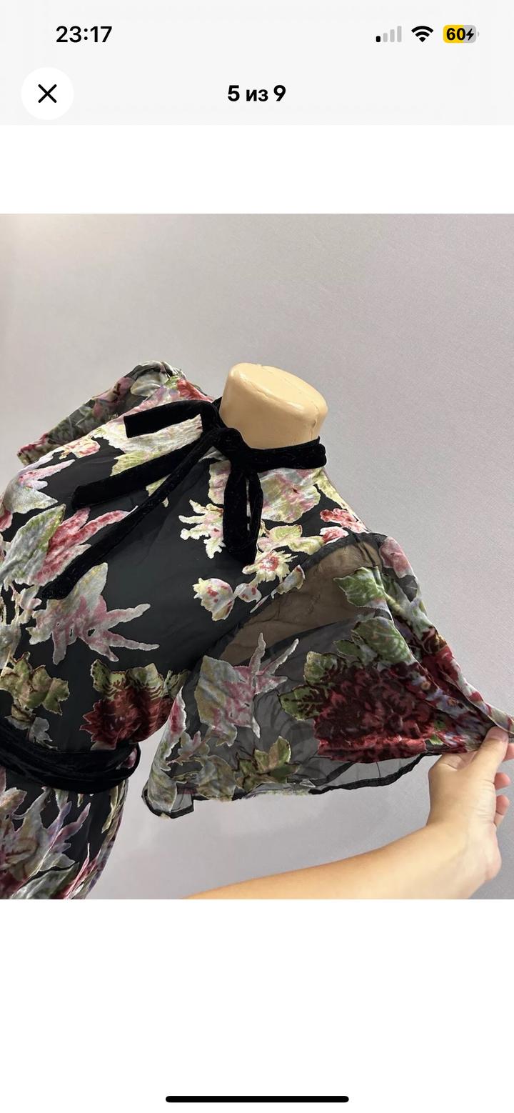 Шифоновое платье с бархатными аппликациями. Головина и пояс - на завязках. Спина частично с вырезом. Артикул: 462925