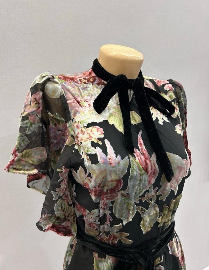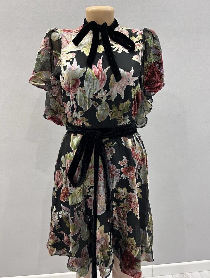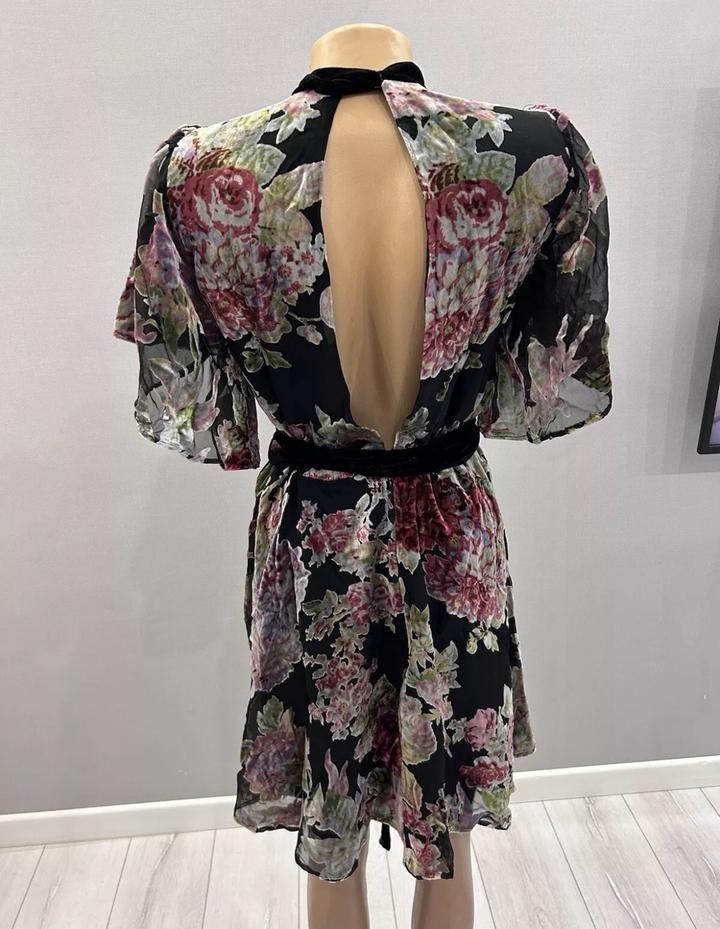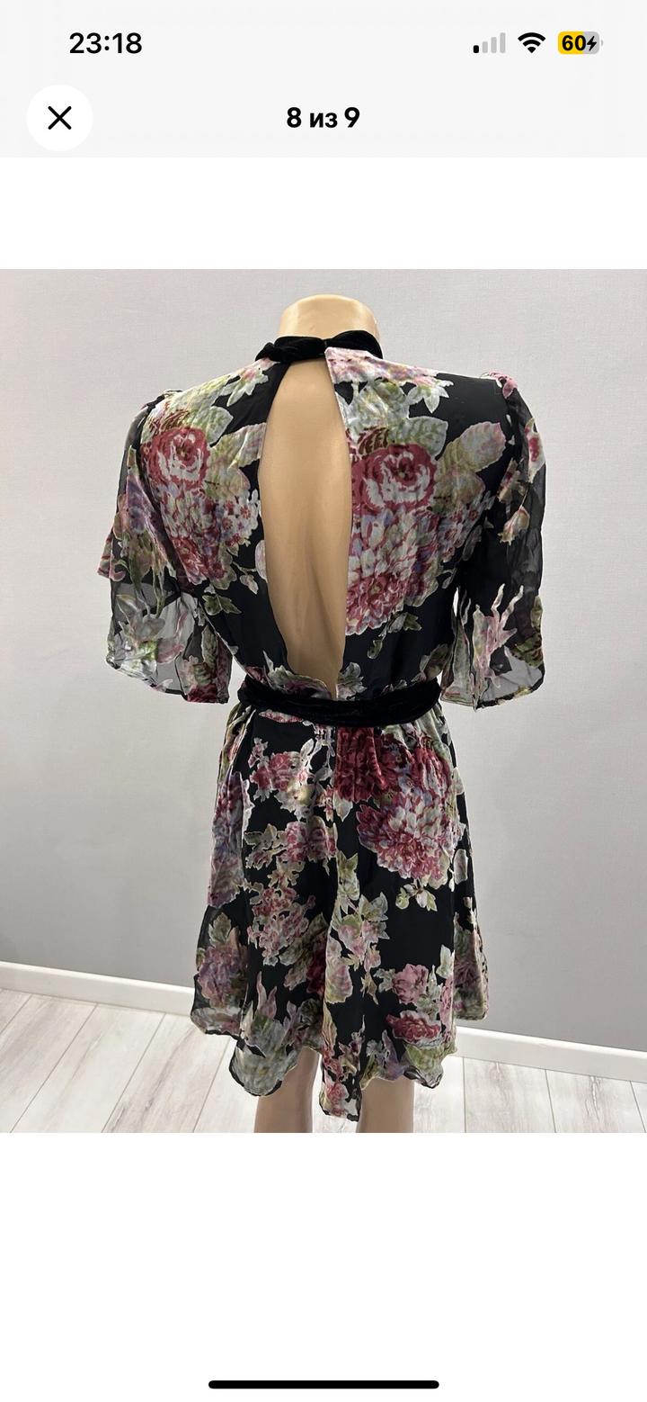 Шифоновое платье с бархатными аппликациями. Головина и пояс - на завязках. Спина частично с вырезом. Артикул: 462925