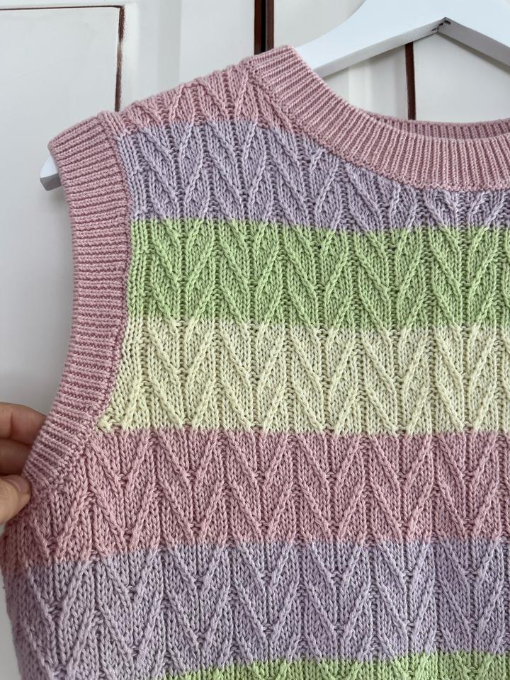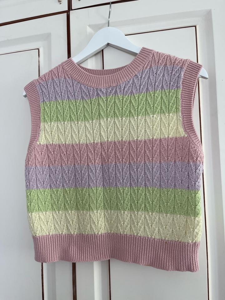 Вязаная безрукавка приятных постельных цветов. Свободного кроя, отлично сидит поверх футболки или лонгслива Артикул: 463554