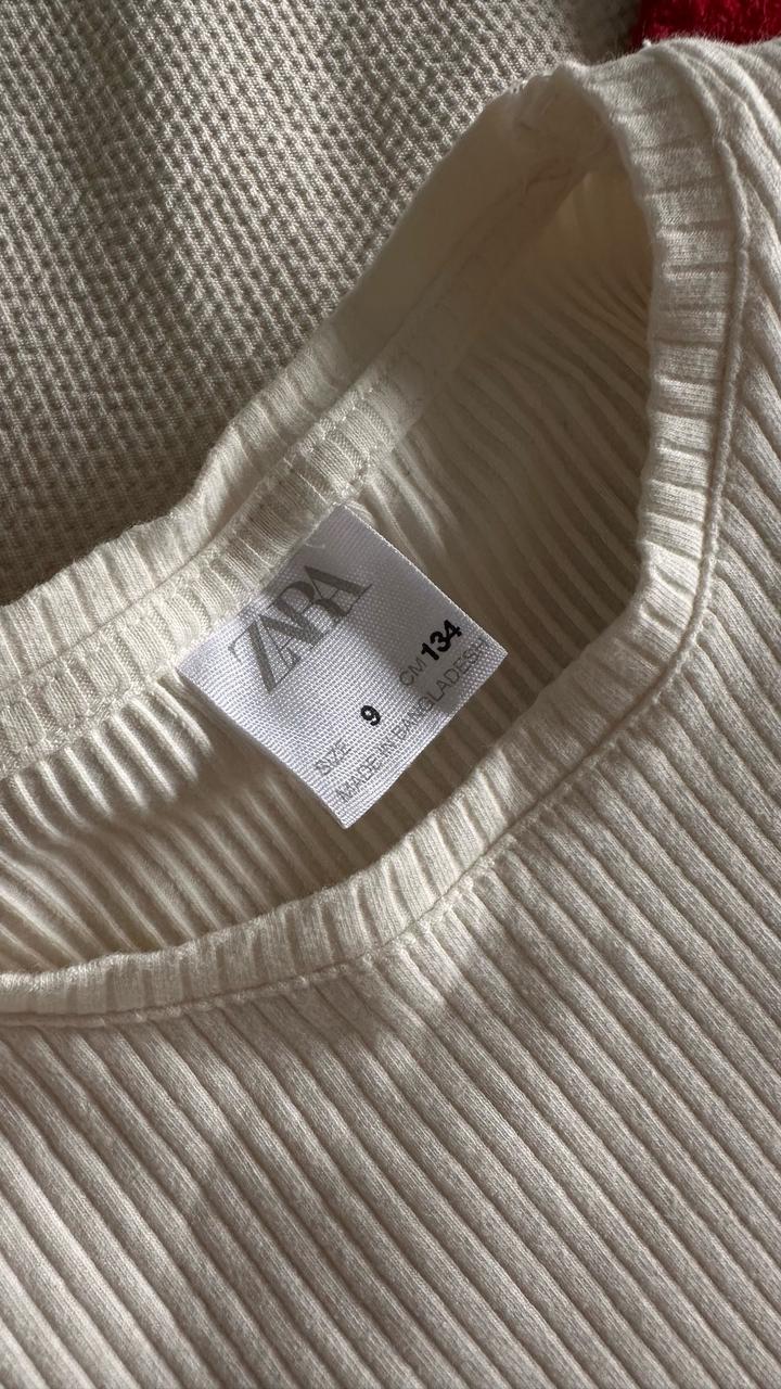 Белый топ Zara, размер 134 — отличное состояние Стильный базовый топ Zara из мягкого трикотажа в рубчик. 🤍 Цвет: молочно-белый 🤍 Размер: 134 см 🤍 Короткий рукав с аккуратной оборкой 🤍 Круглый вырез 🤍 Приятная к телу, эластичная ткань Состояние отличное, без пятен и дефектов. Идеальный вариант для школы, повседневных образов и сочетания с юбками, джинсами или сарафаном. Артикул: 463729