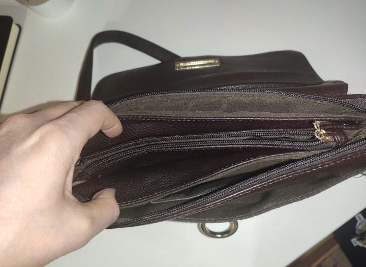 Сумка из натуральной мягкой кожи,новая с биркой ,размер 26*16, есть короткий и длинный ремешок,цвет темно-коричневый,внутри 4 отделений и карман Артикул: 464011