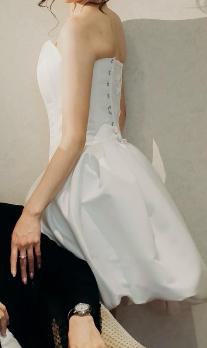 Белоснежный комплект из корсета и юбки — идеальный вариант для невесты, фотосессии или особенного мероприятия. Корсет плотный, структурированный, с аккуратными вертикальными линиями, красиво подчёркивает талию и держит форму без лишних складок. Посадка чёткая, силуэт получается утончённый и очень женственный. Состояние идеальное — надевала один раз на фотосессию. Без пятен, затяжек и следов носки. Подойдёт для свадьбы, регистрации, love story или стильной съёмки. Артикул: 464435