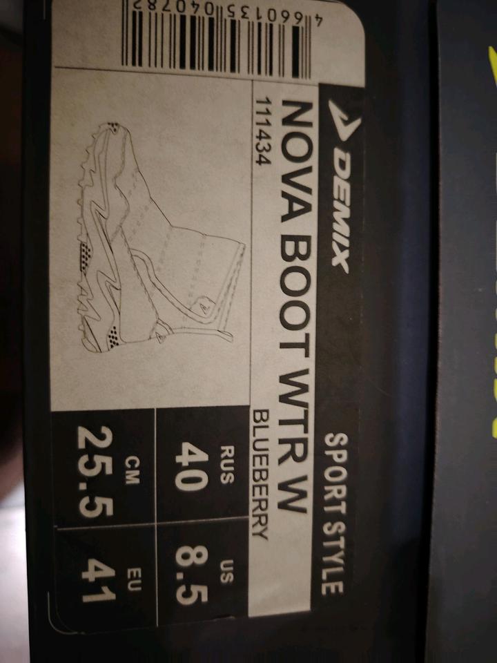 Сапоги женские Demix куплены в Спорт мастере доче очень тёплые, не промокают. На тканевой поверхности есть микротрещинки, но никак не влияют, не промокают. Артикул: 464544