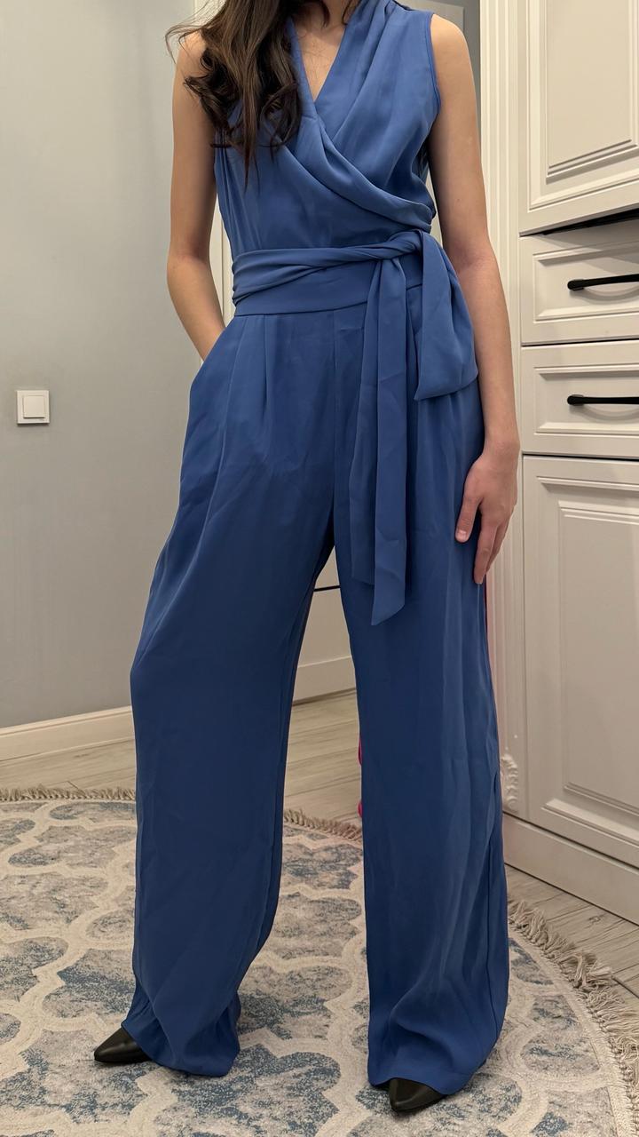 Синий палаццо комбез, идеально сидит по фигуре ,качество отличное , не одевали ниразу с момента покупки, продаем так как не пригодился, подойдет так и для размера M/L Артикул: 464630