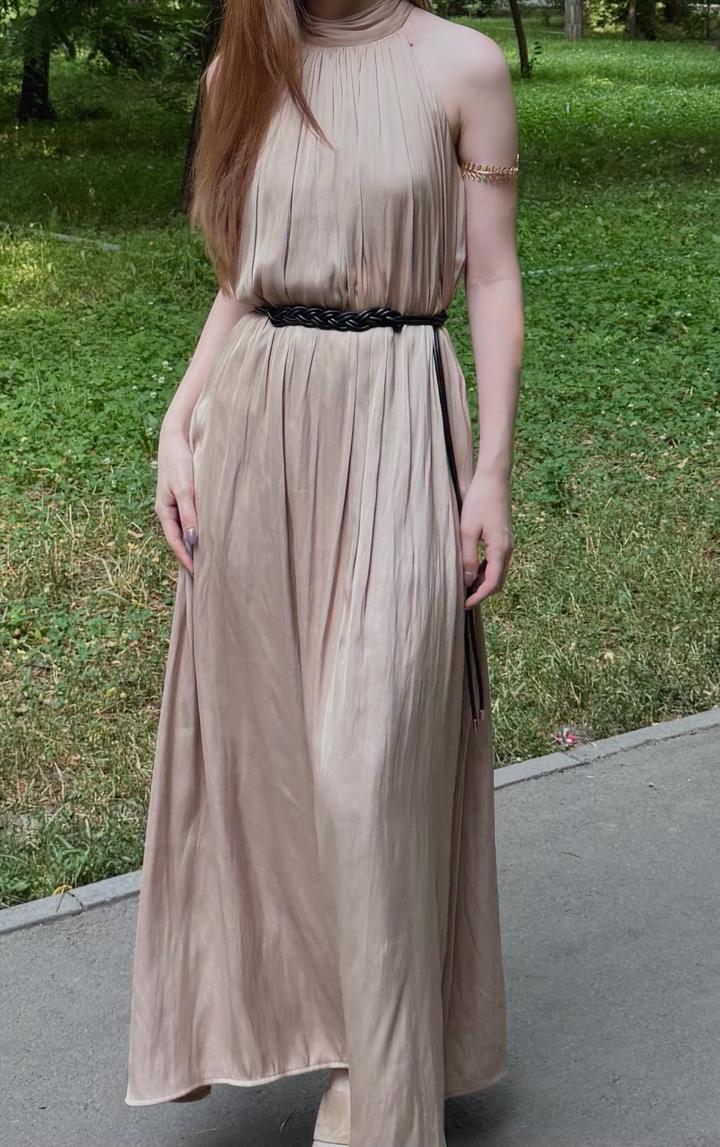 Сатиновое бежевое платьеS