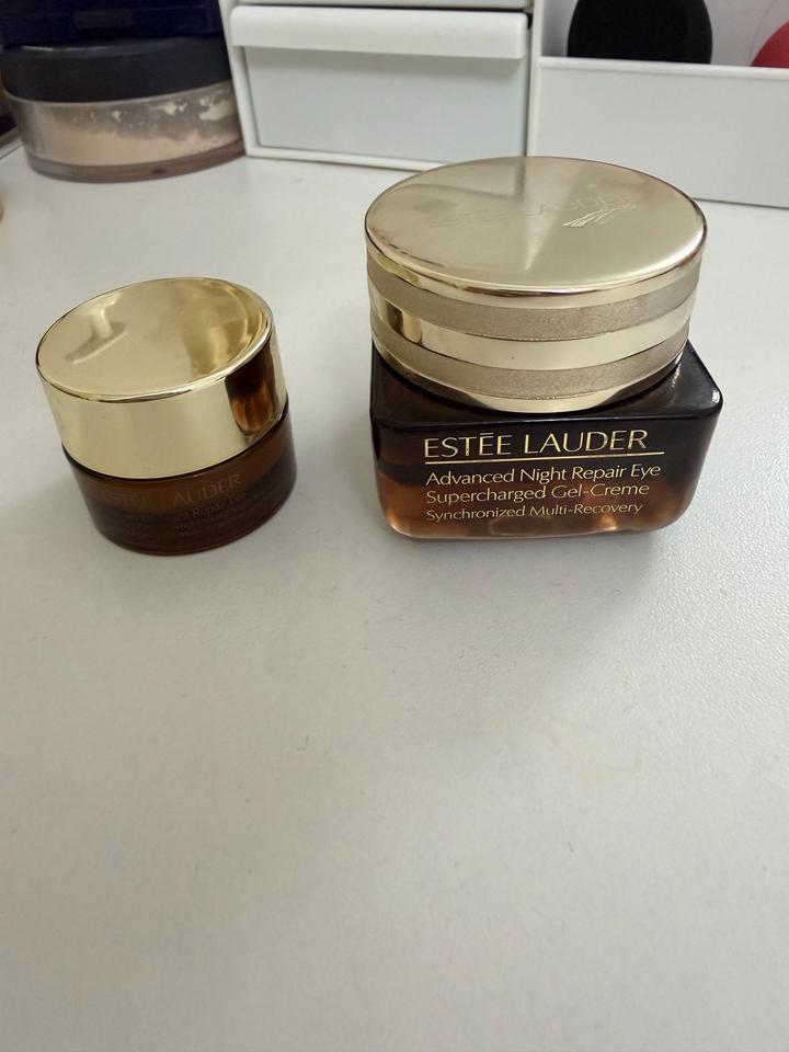Este Lauder eye, крем вокруг глаз оригинал 100 % покупала в Корее, маленькую баночку пользовалась пару раз, но пошла аллергия, большая баночка открытая но не использовала, хотела сначала маленькую закончить, отдам вместе с маленькой баночкой, срок годности до июня 2027 года , хватает на долго! Артикул: 464915
