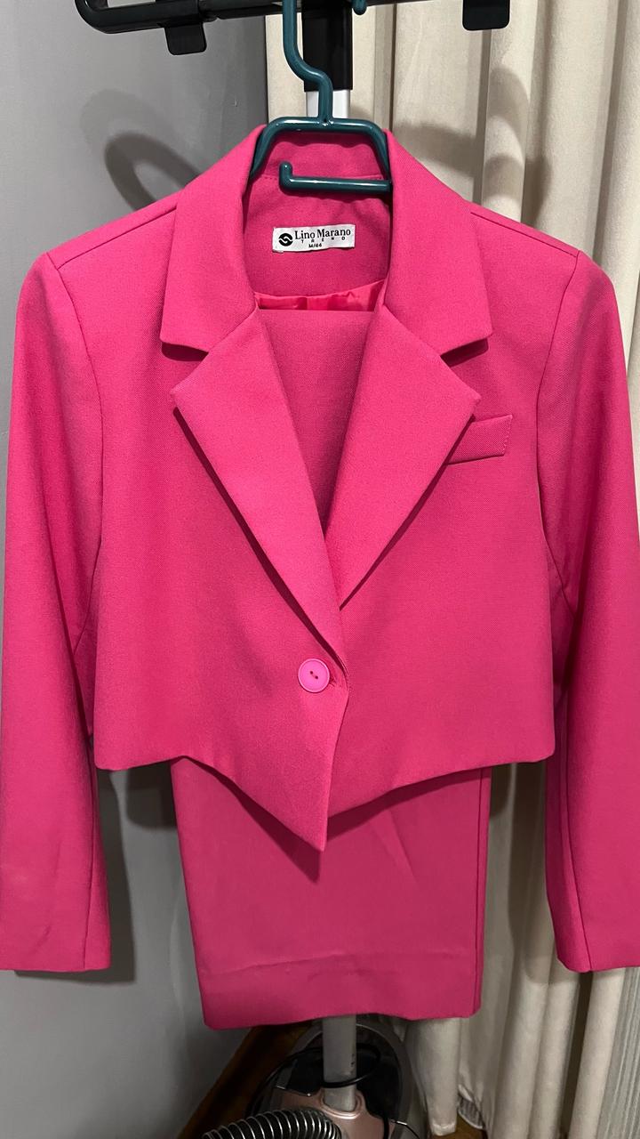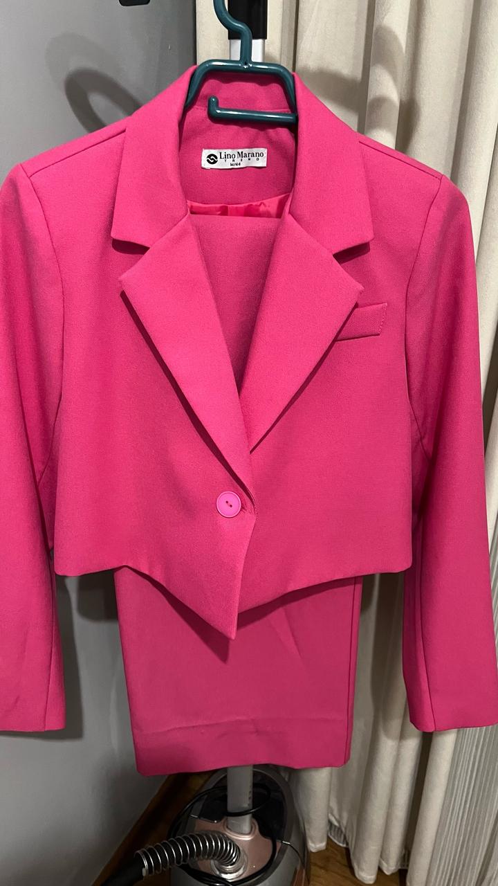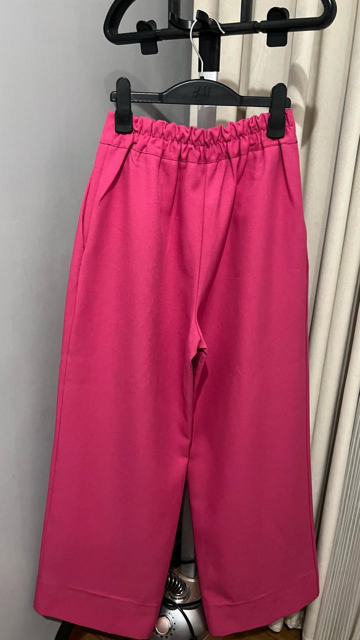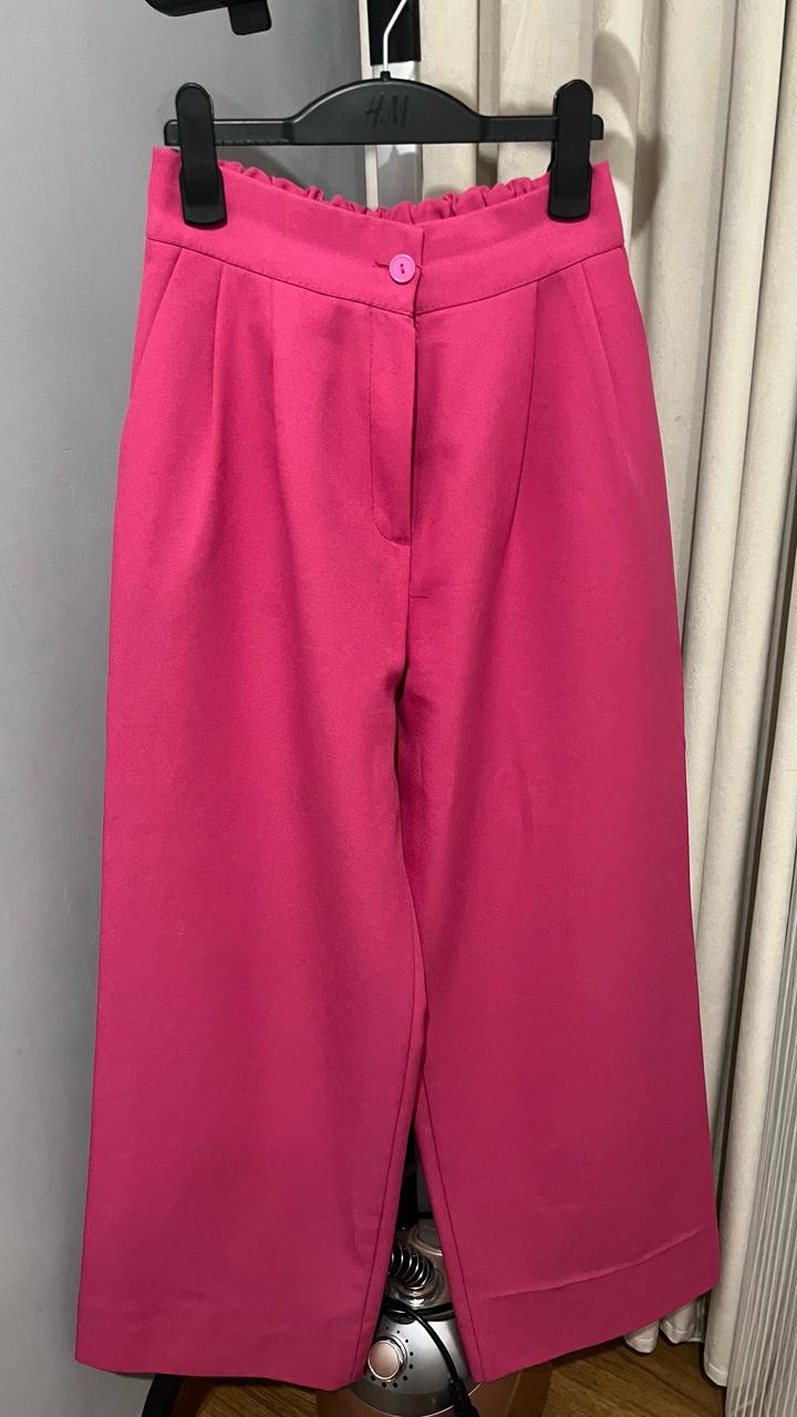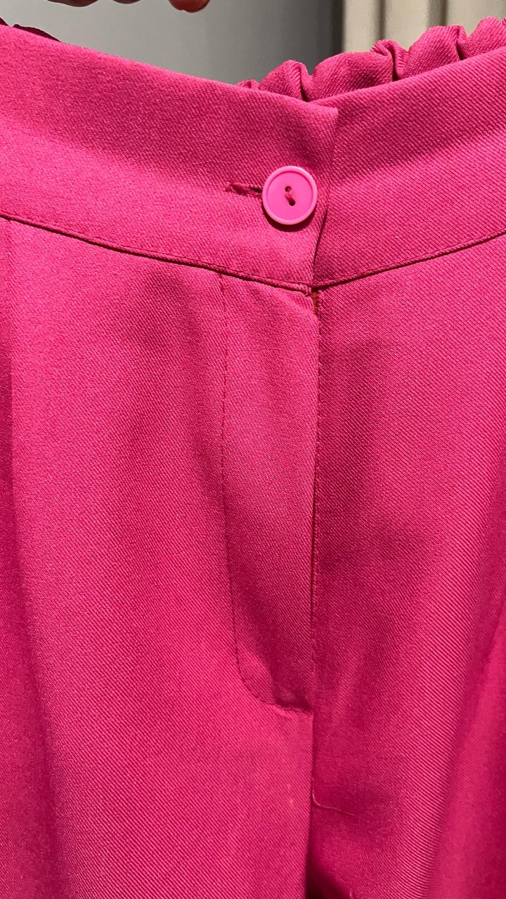 Яркий стильный костюм в насыщенном розовом цвете. Состоит из укороченного жакета и широких брюк. Укороченный жакет на пуговице Классический лацкан Брюки свободного кроя Сзади на поясе удобная резинка Плотная костюмная ткань Отличный вариант для мероприятий, праздников, фотосессий или просто для эффектного образа. Можно носить вместе или сочетать по отдельности. Артикул: 464941