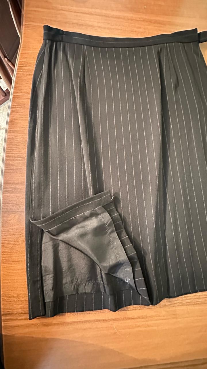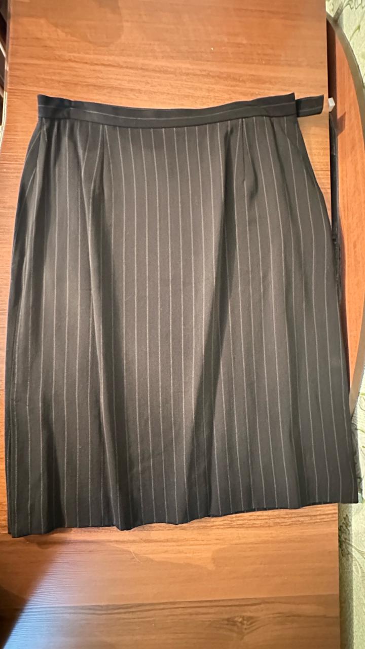Классическая юбка в полоску прямого кроя до колена . Боку имеется небольшой разрез, юбка на подкладе, высокая посадка. Артикул: 465388