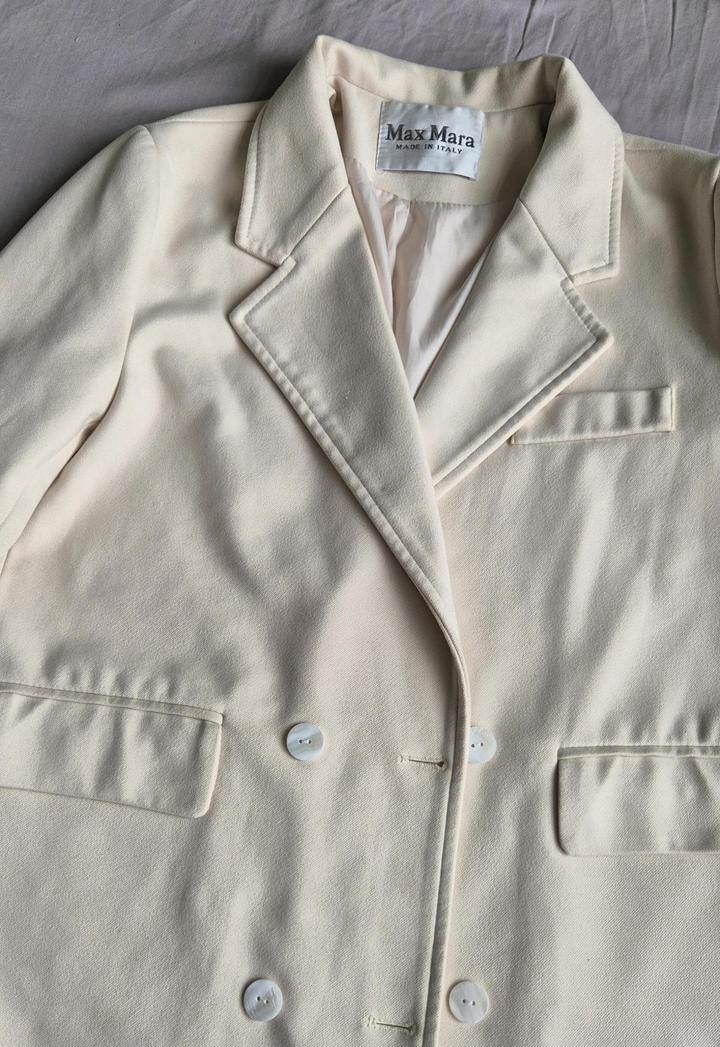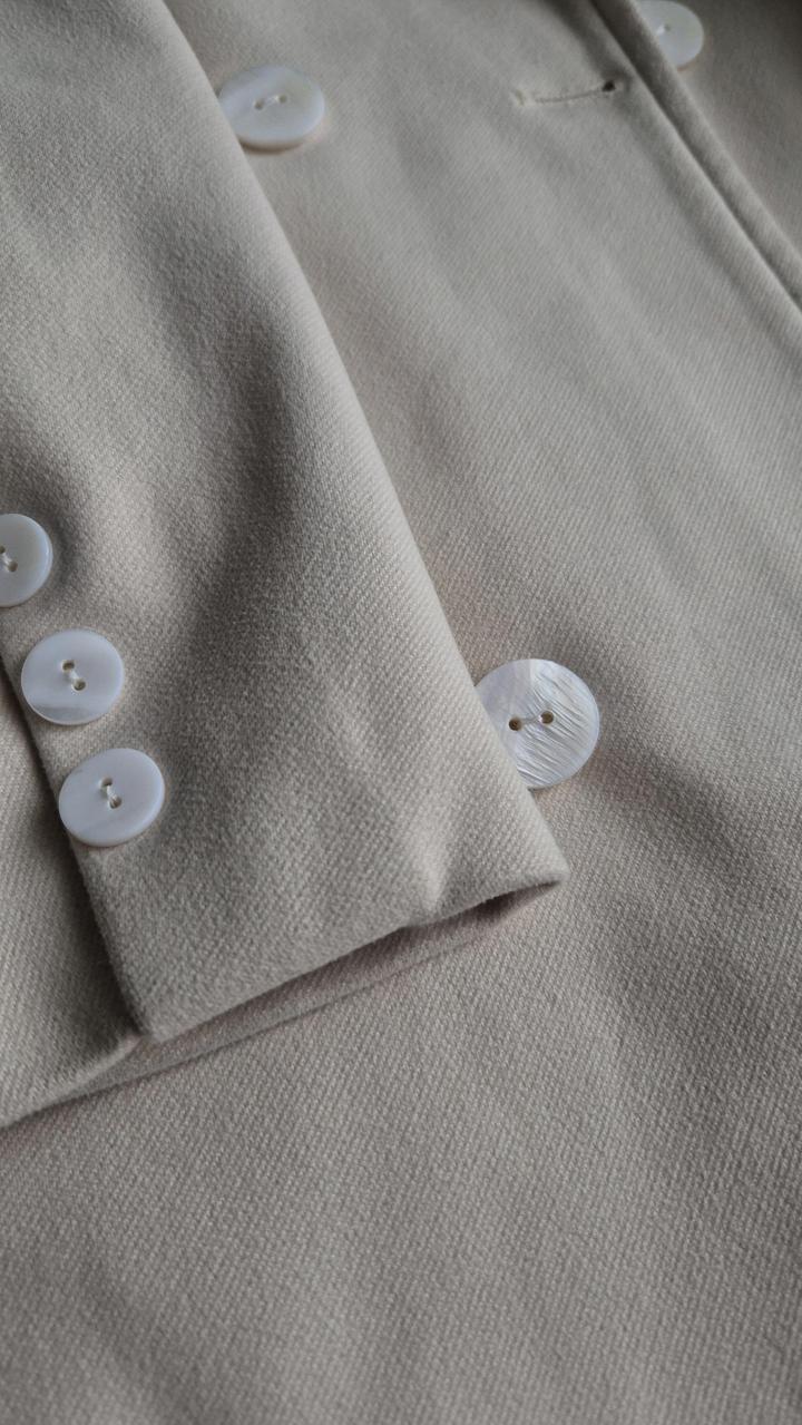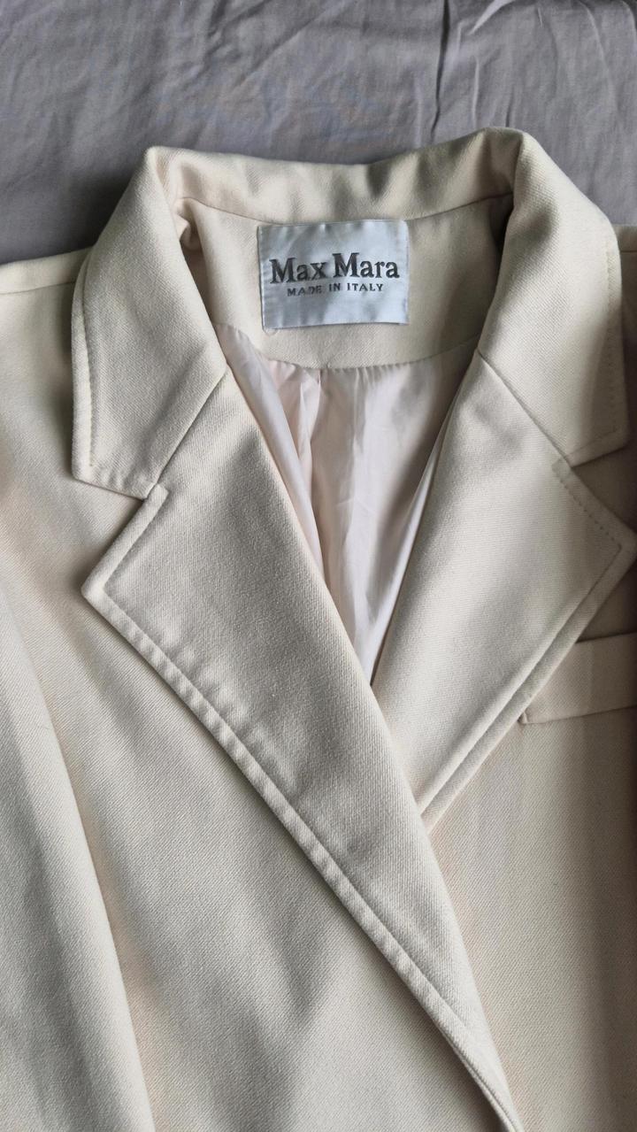 Пальто молочного цвета Длина 110 сантиметров, сзади глубокая шлица Пуговицы заменены на перламутровые Размер xs-m Артикул: 465414