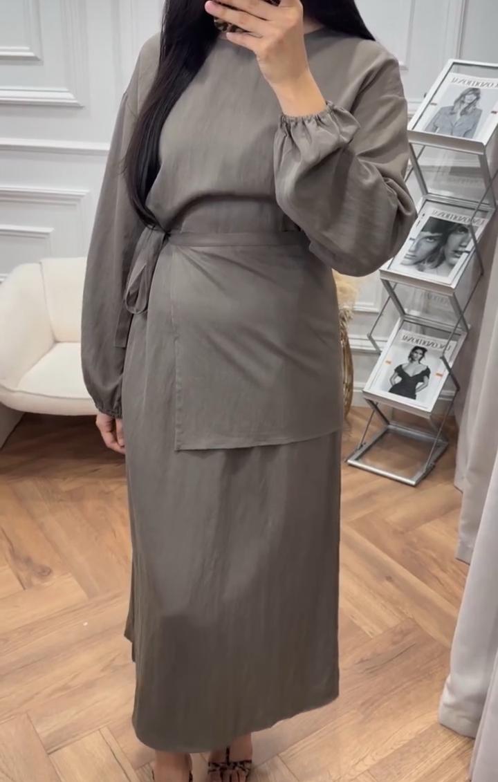 Платье в пол с декоративным фартуком из плотной ткани Артикул: 465729
