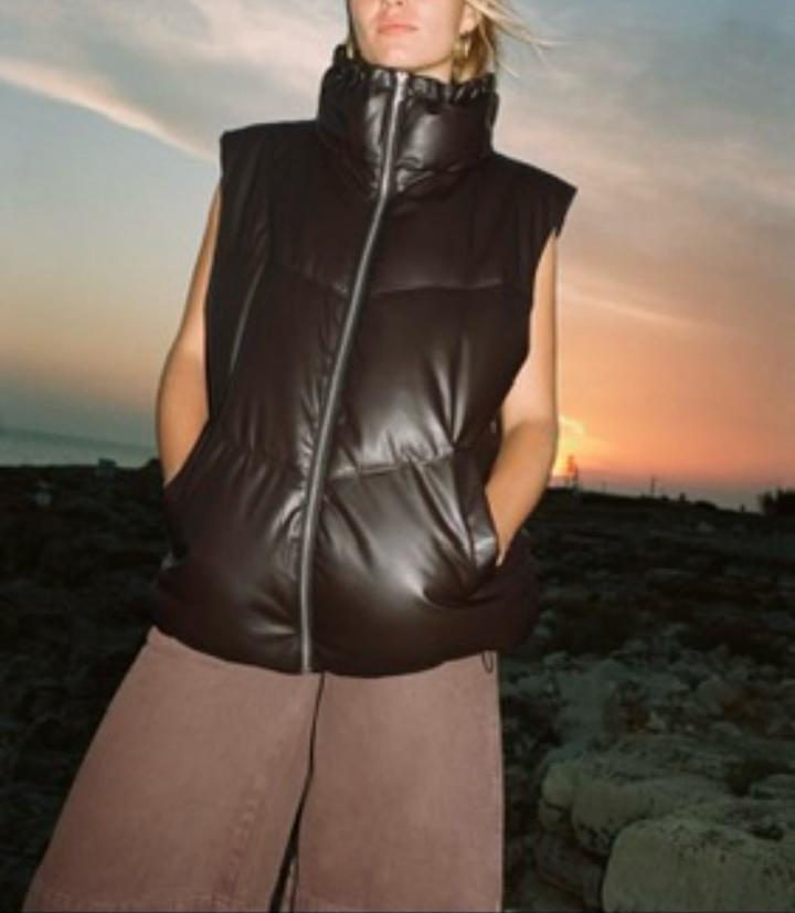 Zara стеганный жилет в трендовом шоколадном оттенкеS/M