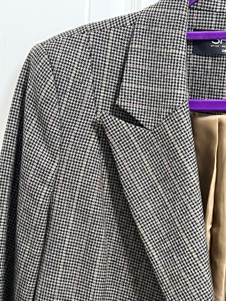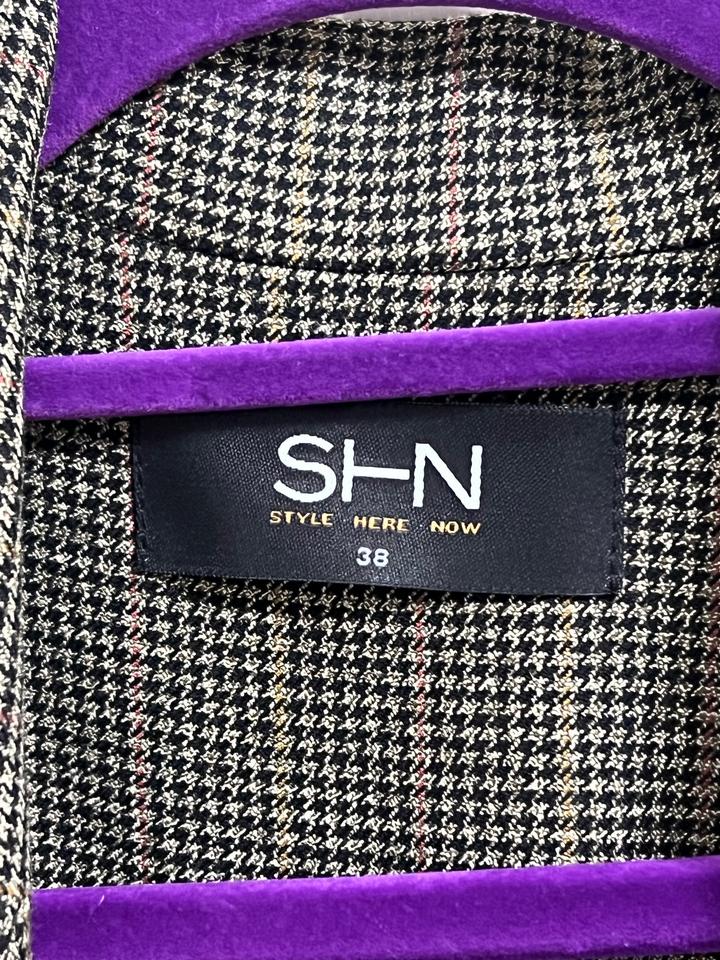 Коричневый, приталенный, двубортный пиджак в мелкую клетку. Производство - турция. Размер 38-M. Новый. Прямой крой, но явно подчеркивает талию, четкая линия плеч. Можно стилизовать днём на работу и на красивый вечер. Пиджак хорошо держит форму, не сковывает движения в плечах и локтях, не мнется. Артикул: 466589