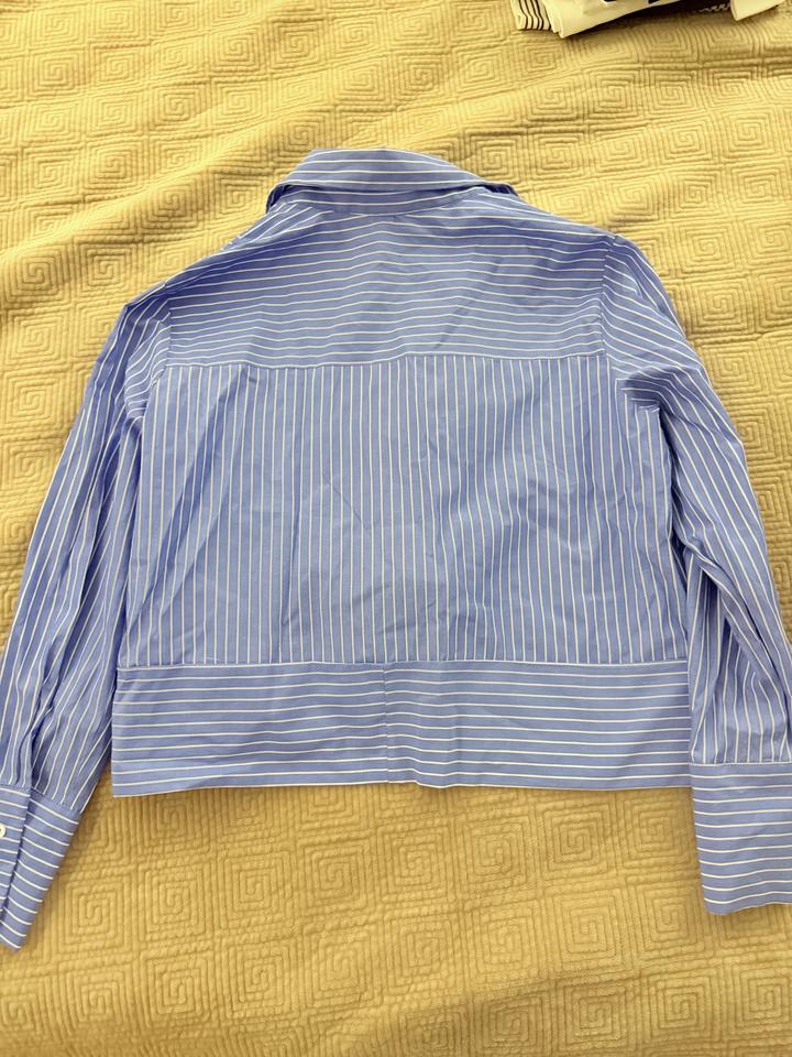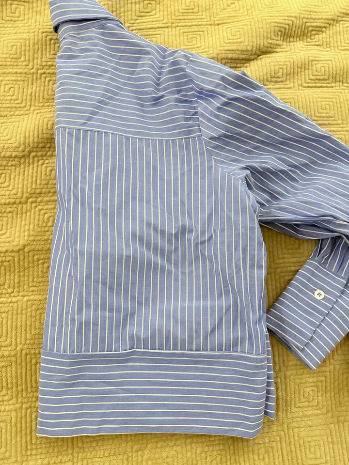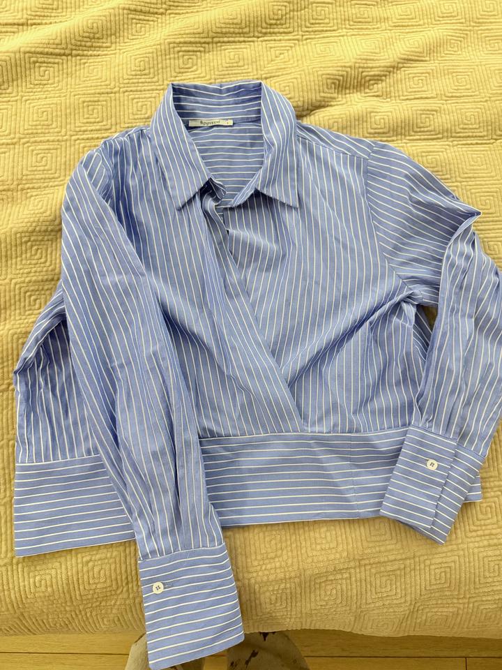 Рубашка укароченная синяя в полосками , с манжетой Артикул: 466624