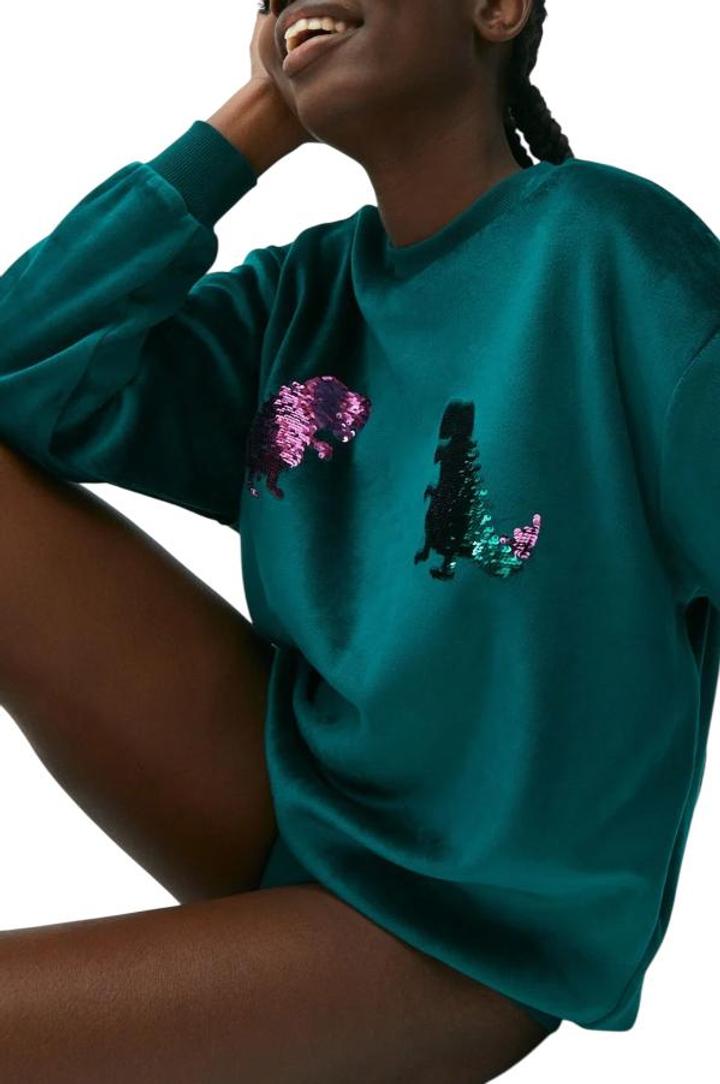 В отличном состоянии, носила пару раз. Принт пайетки меняют цвет с зелёного на фиолетовый. Очень приятный к телу. Артикул: 466745