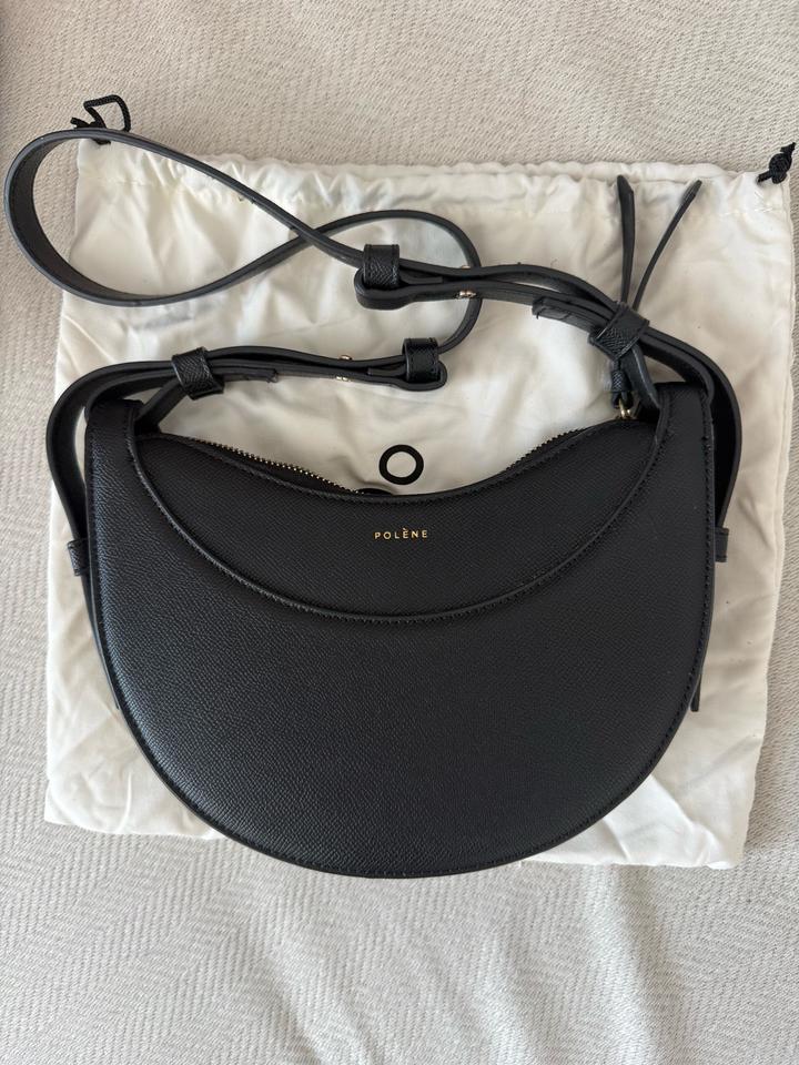 Кросс-боли сумка от Polene модель Numero Dix, черная кожа. Имеются два плечевых ремня (модно носить в руке, можно удлинять), пыльник. Очень хорошо держит форму, удобная. Не ношена Артикул: 466810
