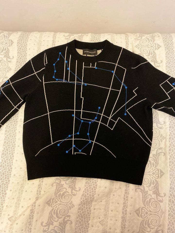 Пуловер трикотаж шерсть . Черный цвет с абстрактным рисунком , размер S-M . В отличном состоянии. Теплый , мягкий . Оригинал Артикул: 466903
