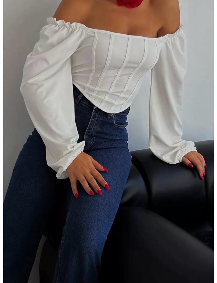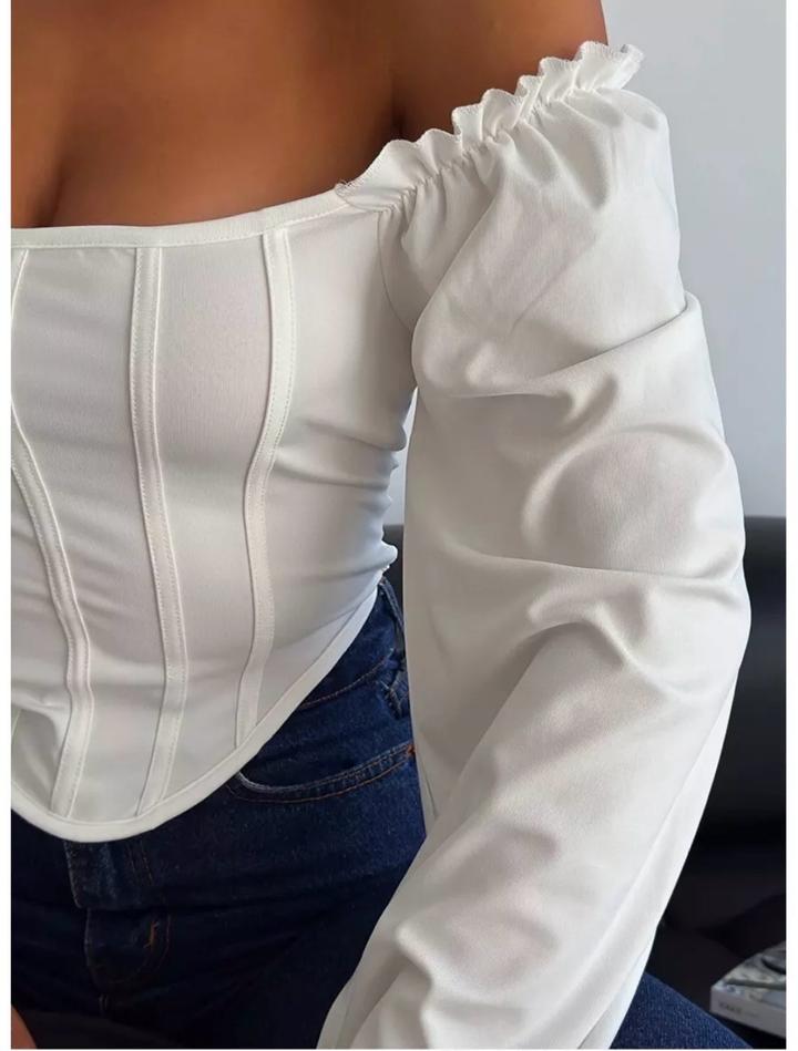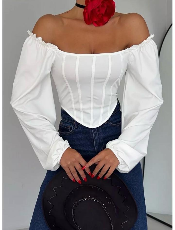 Белая блузка с рукавами фонариками. Можно носить с открытыми плечами. Не подошла по размеру. Артикул: 466933