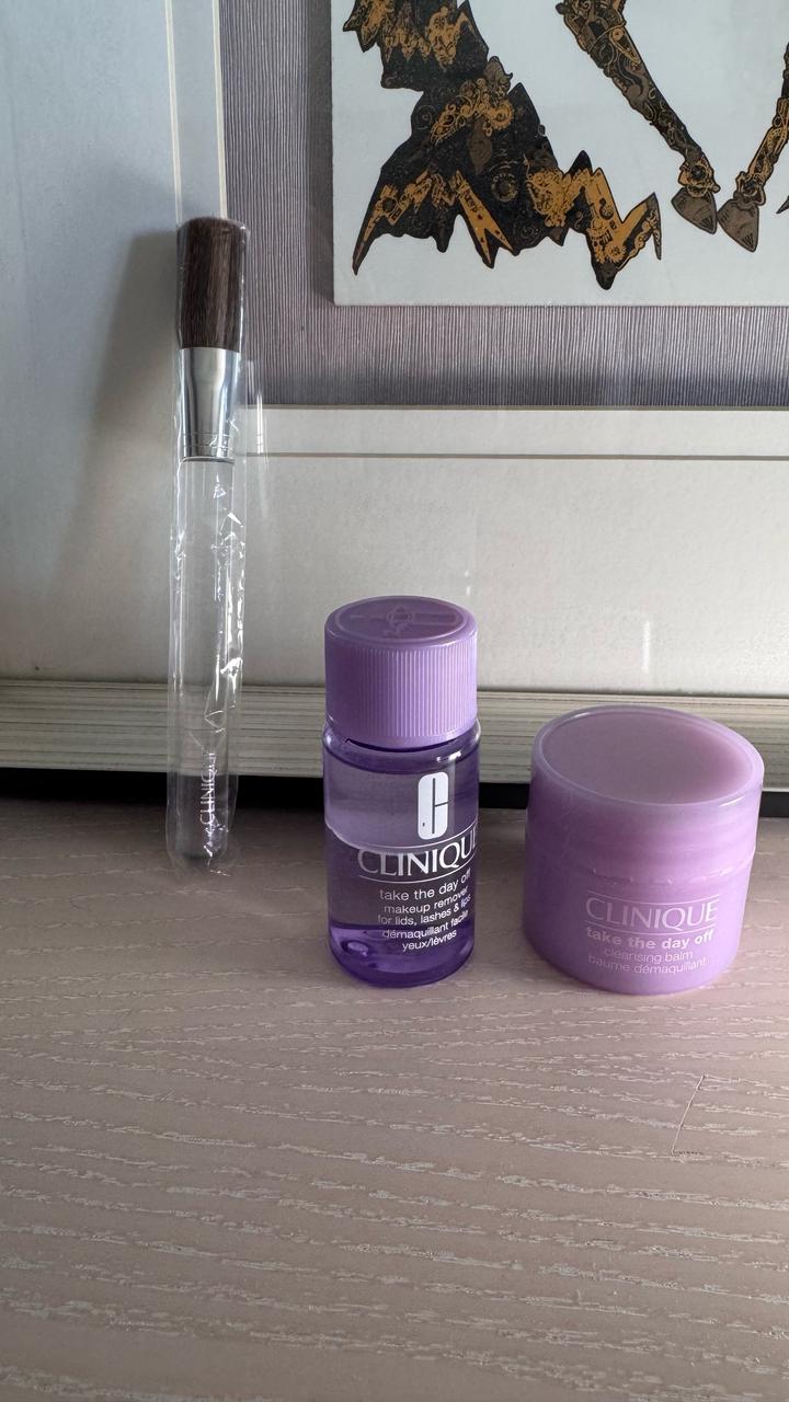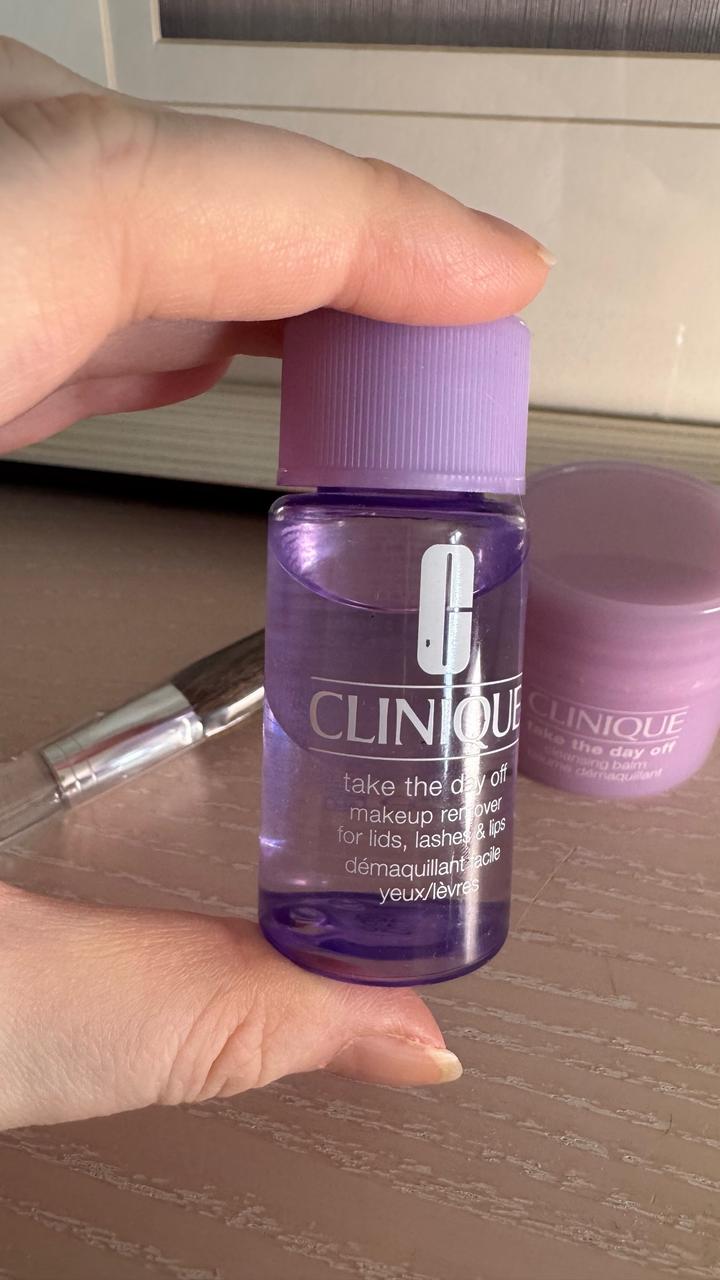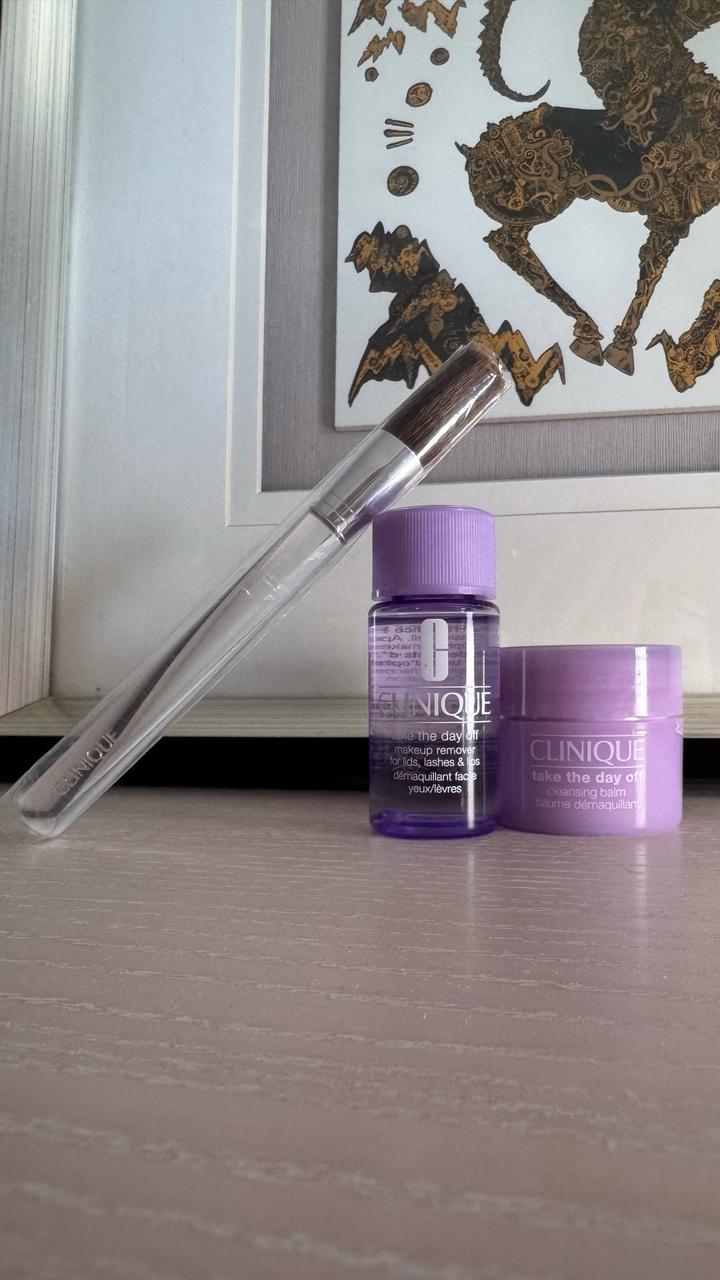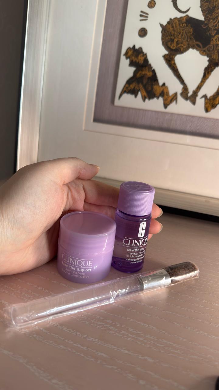 Трэвел формат -мини . Отличный вариант для того чтобы попробовать и потом купить полноразмерные банки Круглая баночка это очищающий щербет/бальзам для снятия макияжа -средства еще есть половина (объем банки 15мл) Бутылочка 30 мл двухфазная жидкость для снятия макияжа ,использовала пару раз бутылочка почти полная Кисть для макияжа от Clinique новая Три дня акция :бесплатная доставка и скидка -20% с промокодом FEB20 Артикул: 467045